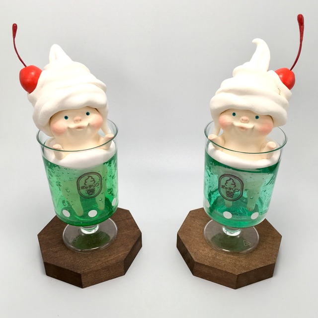 ソーダの色や頭につけたチェリーの位置でそれぞれ個性がある