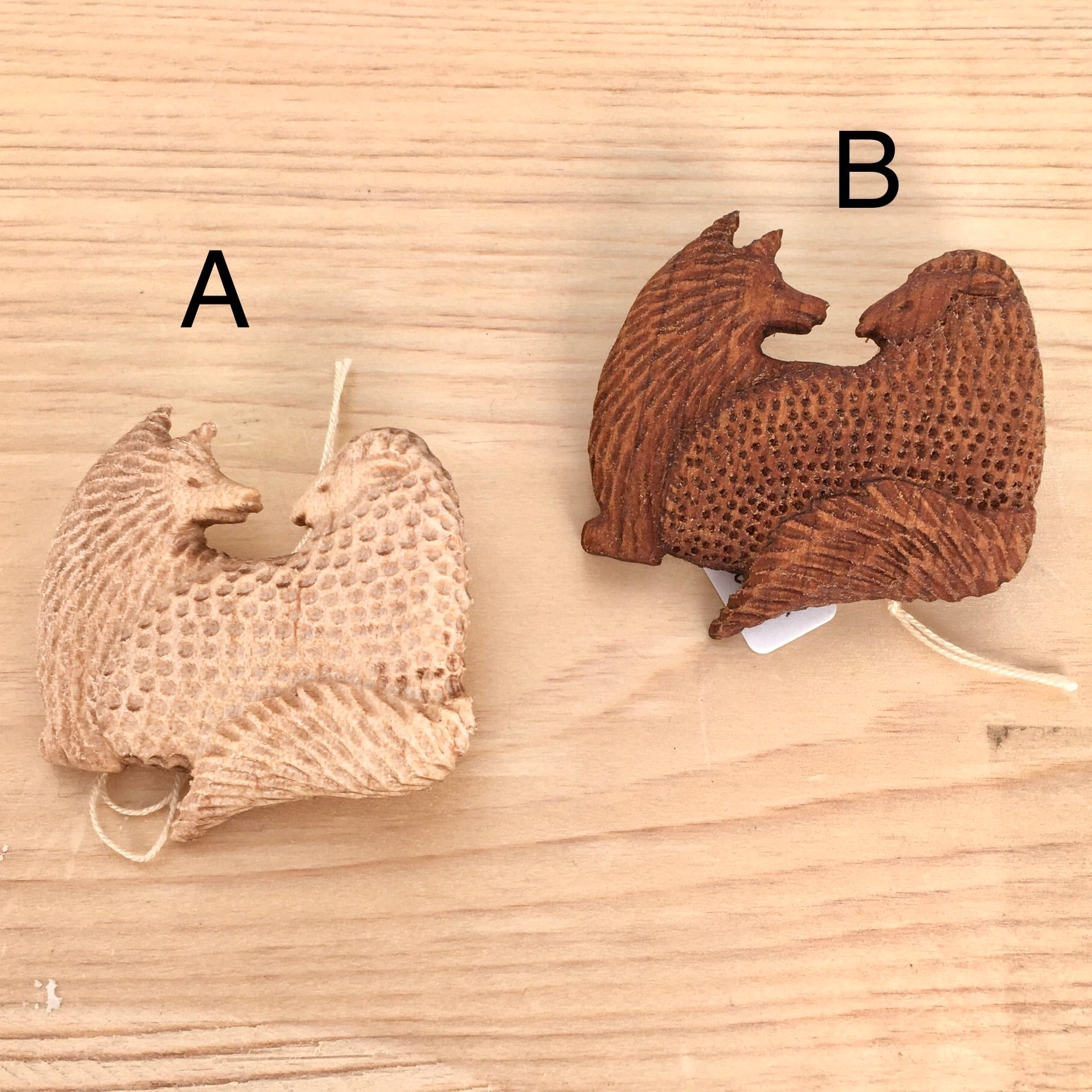 ひとつひとつ木彫りで制作したブローチです、