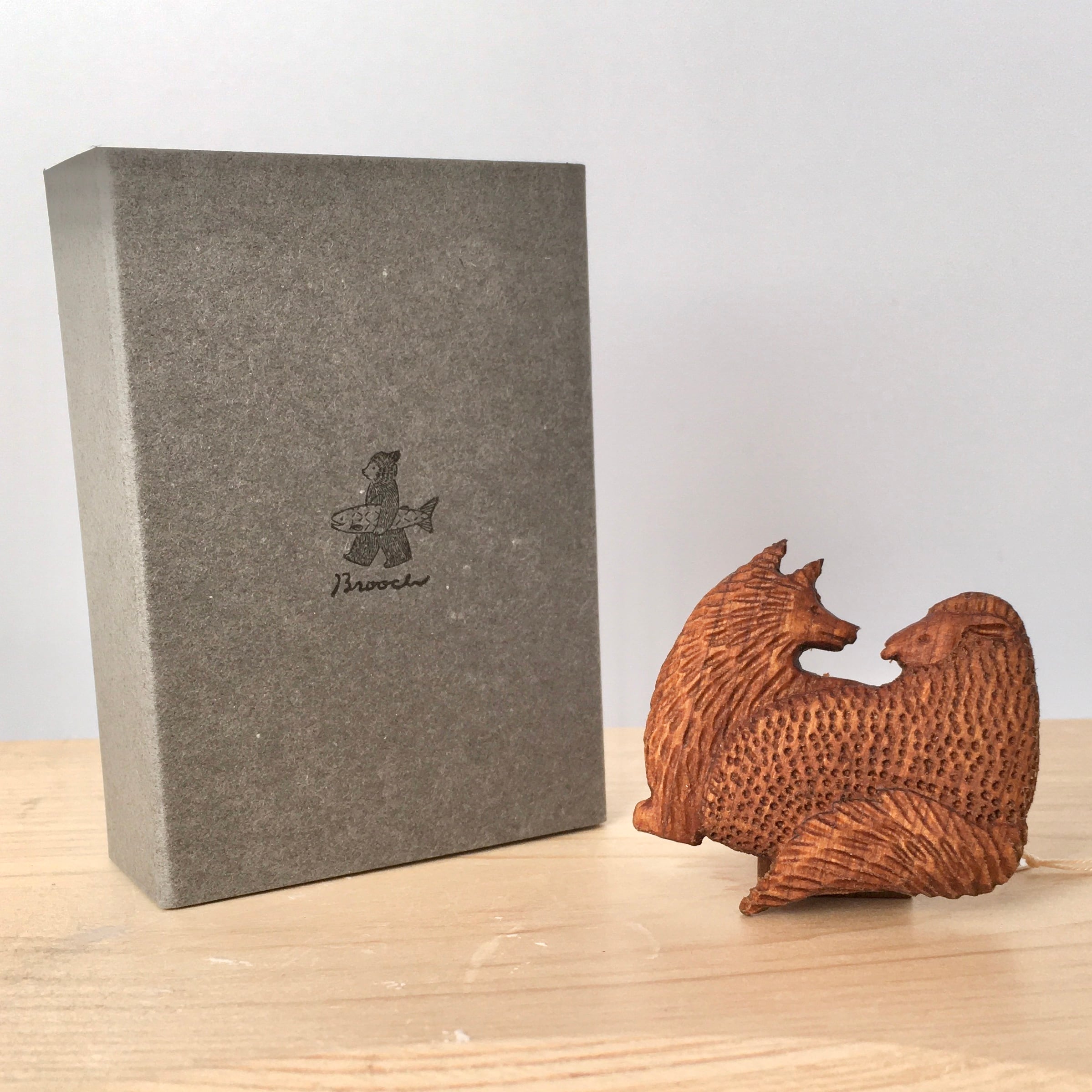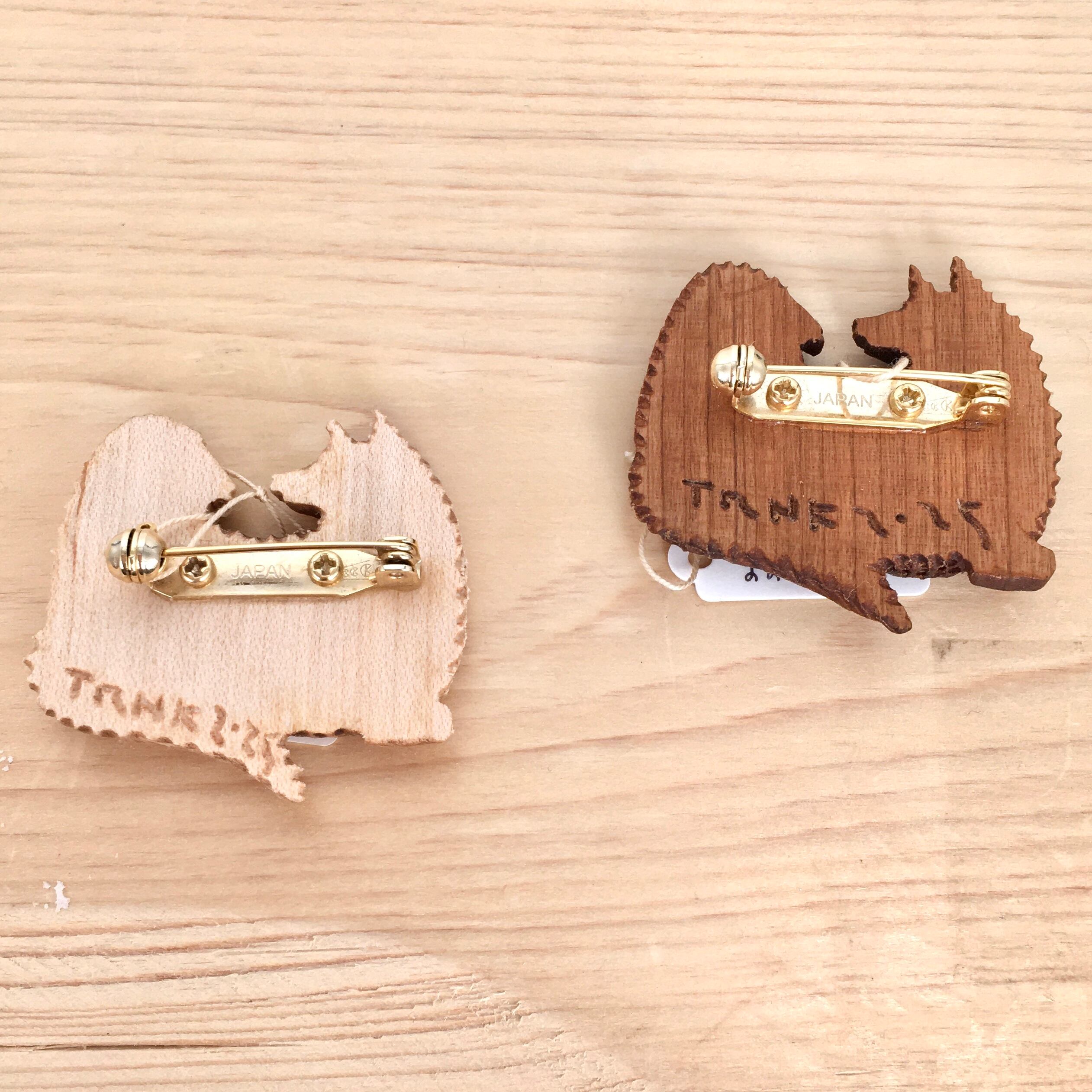 木(桜、ブナ、ウォルナット、カエデ、メイプルのいずれか)、ブローチ金具(真鍮)