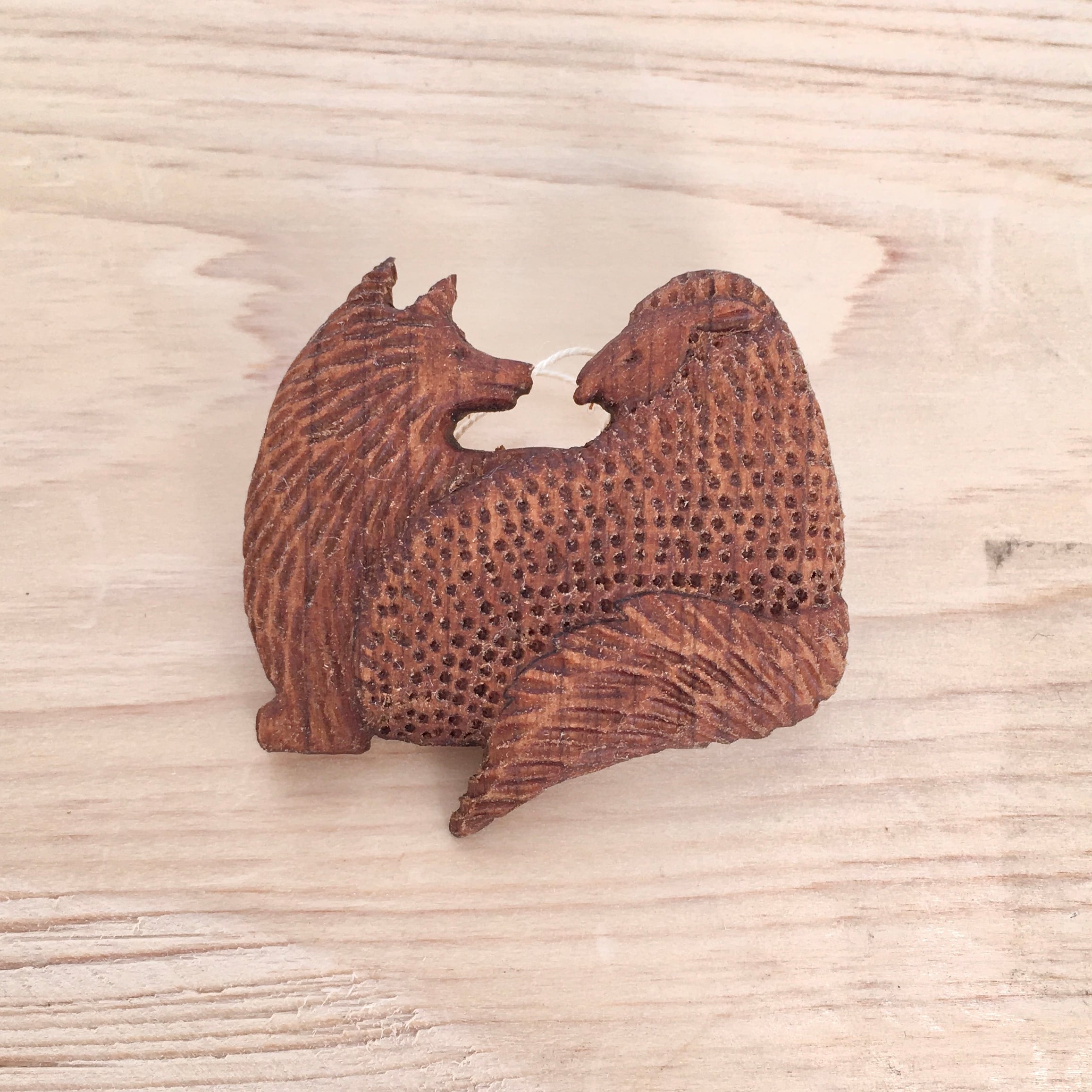 【トリノコ】木のブローチ「編む羊」