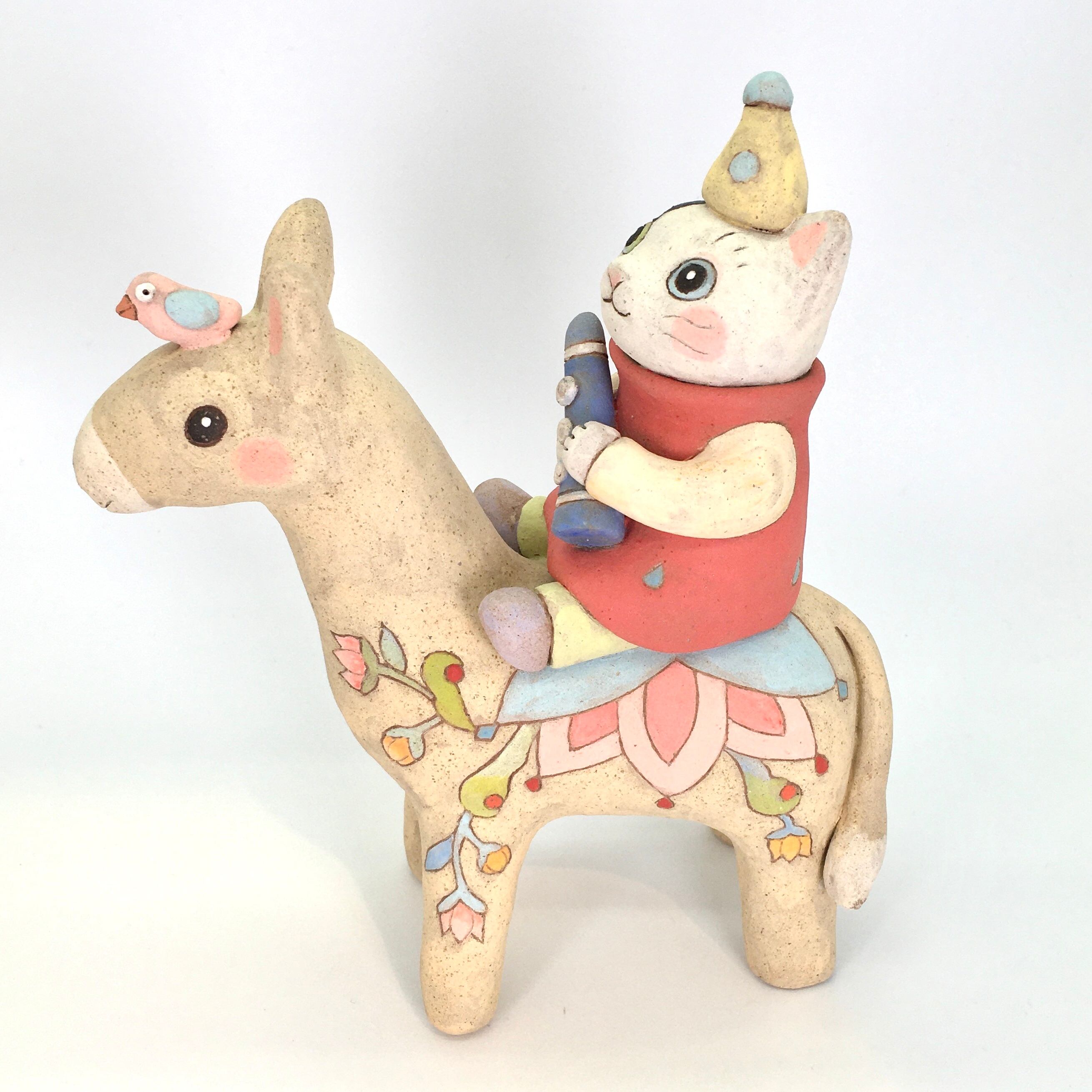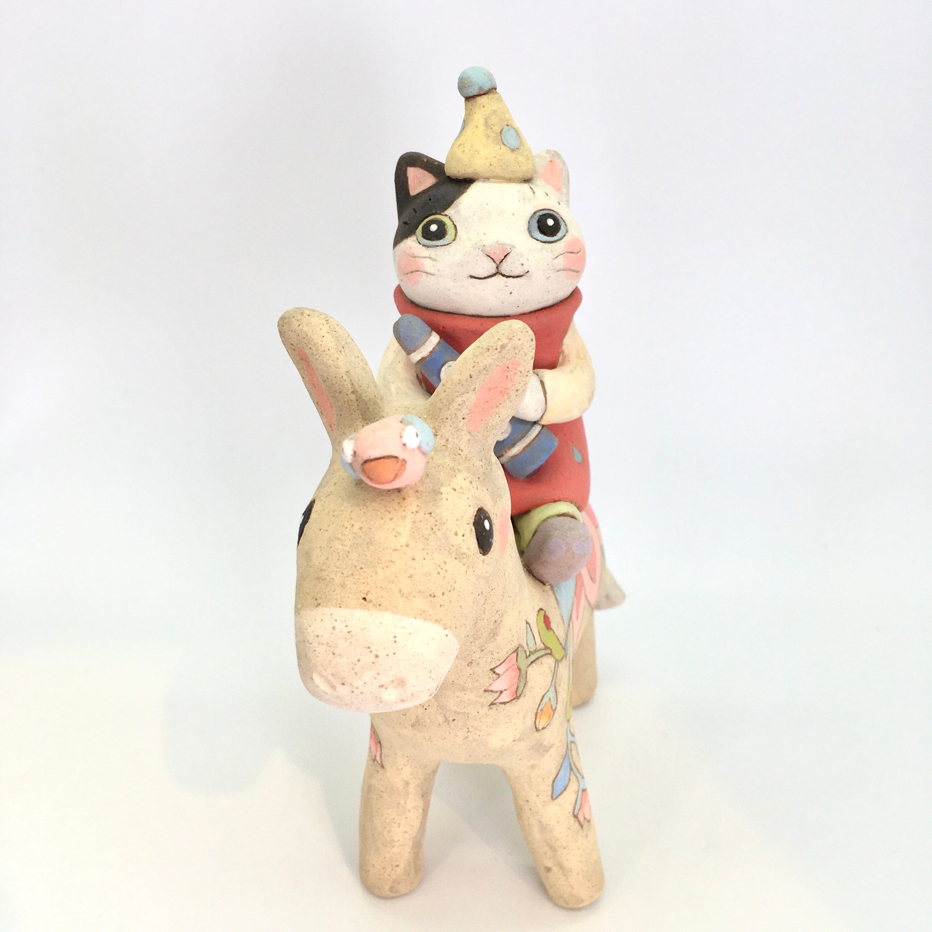 【月魚ひろこ】立体作品「ねことロバさん」