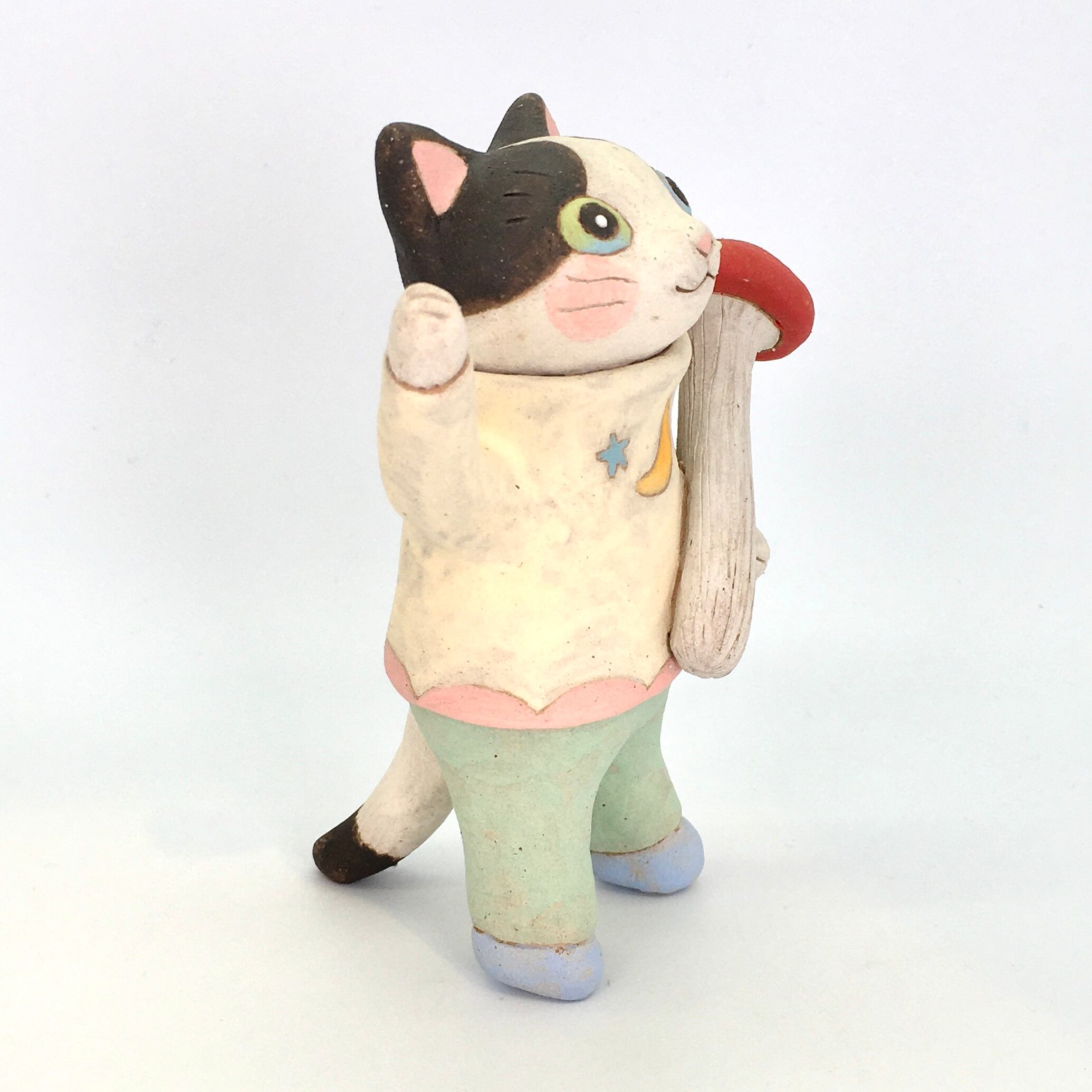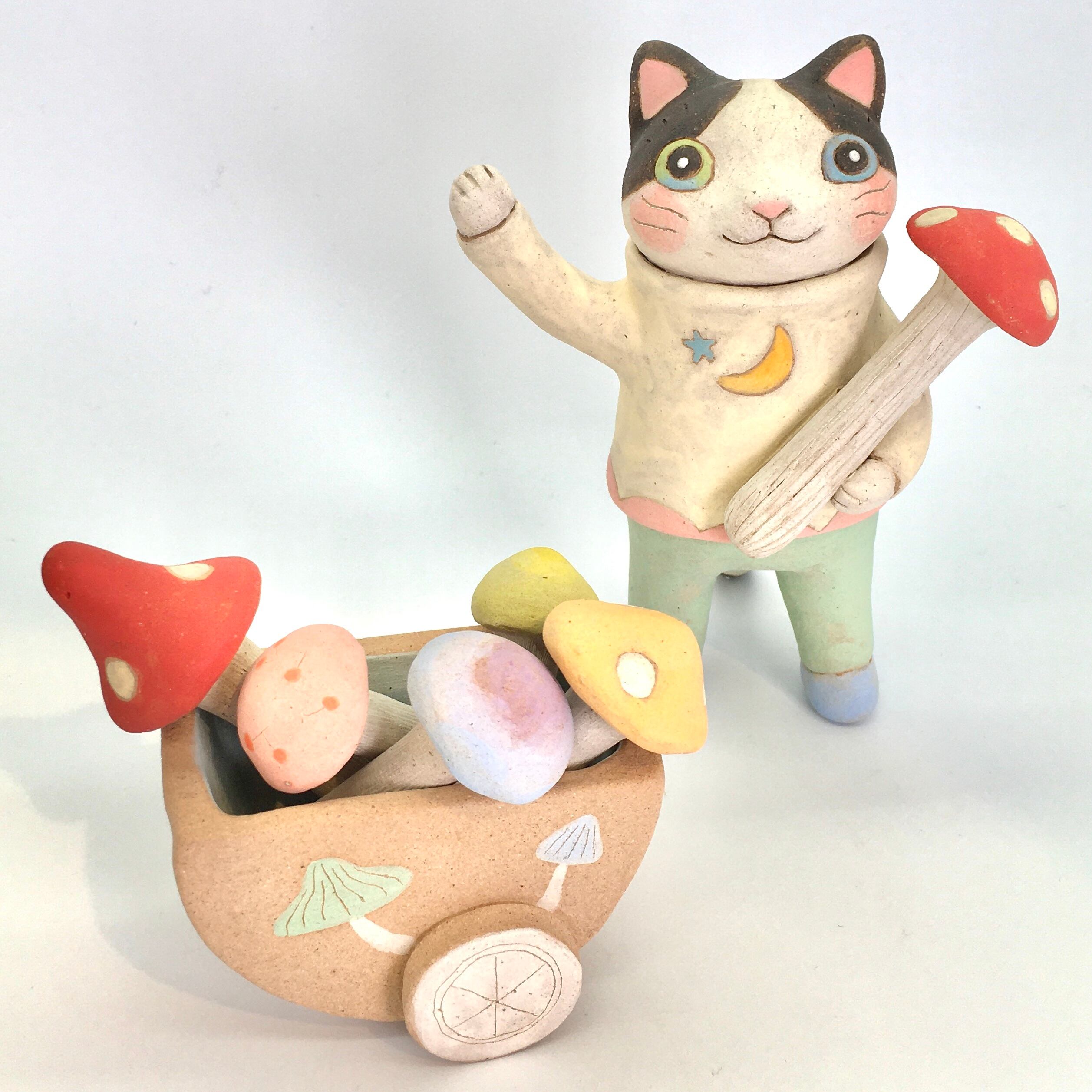 【月魚ひろこ】立体作品「ねこのきのこ屋さん」+ワゴン