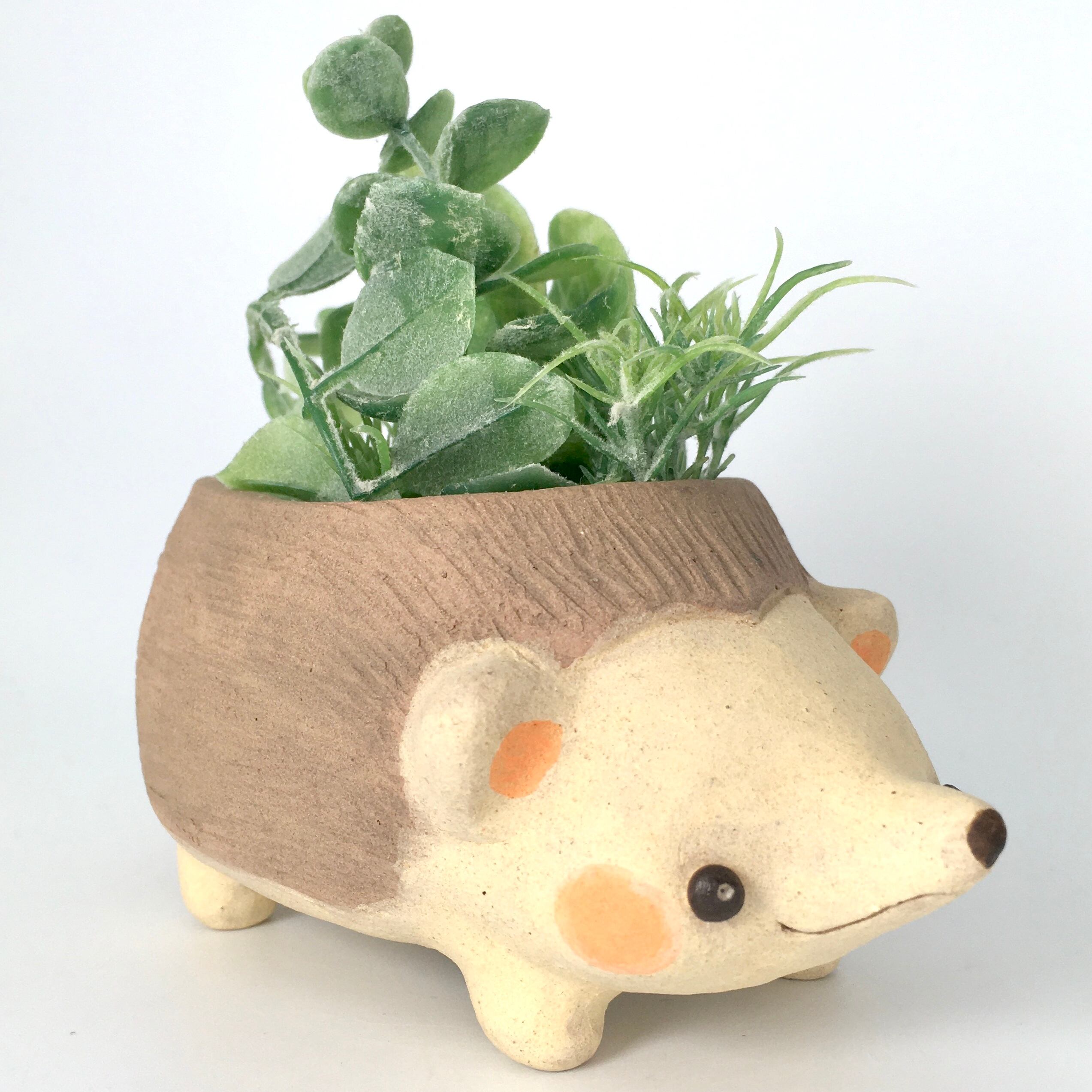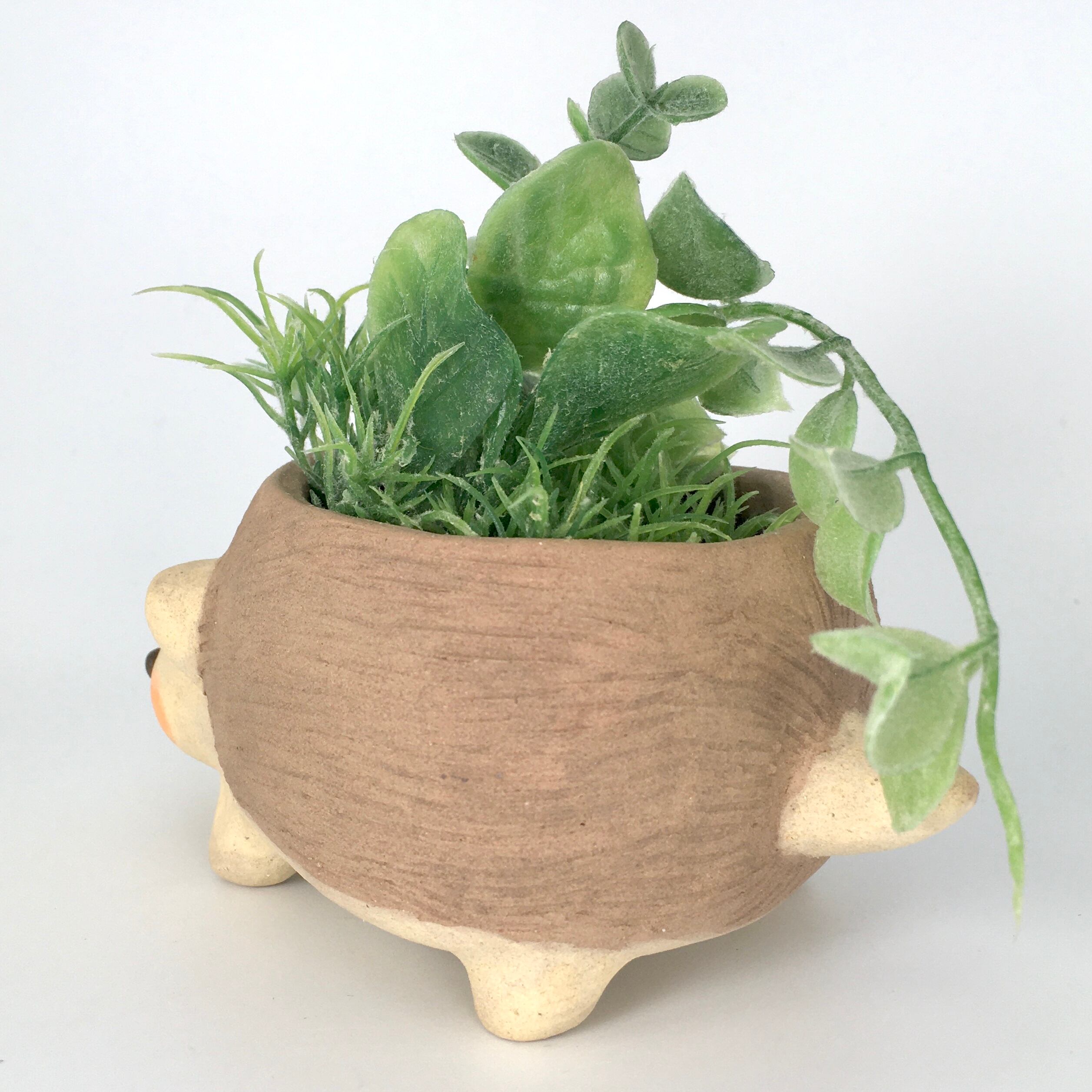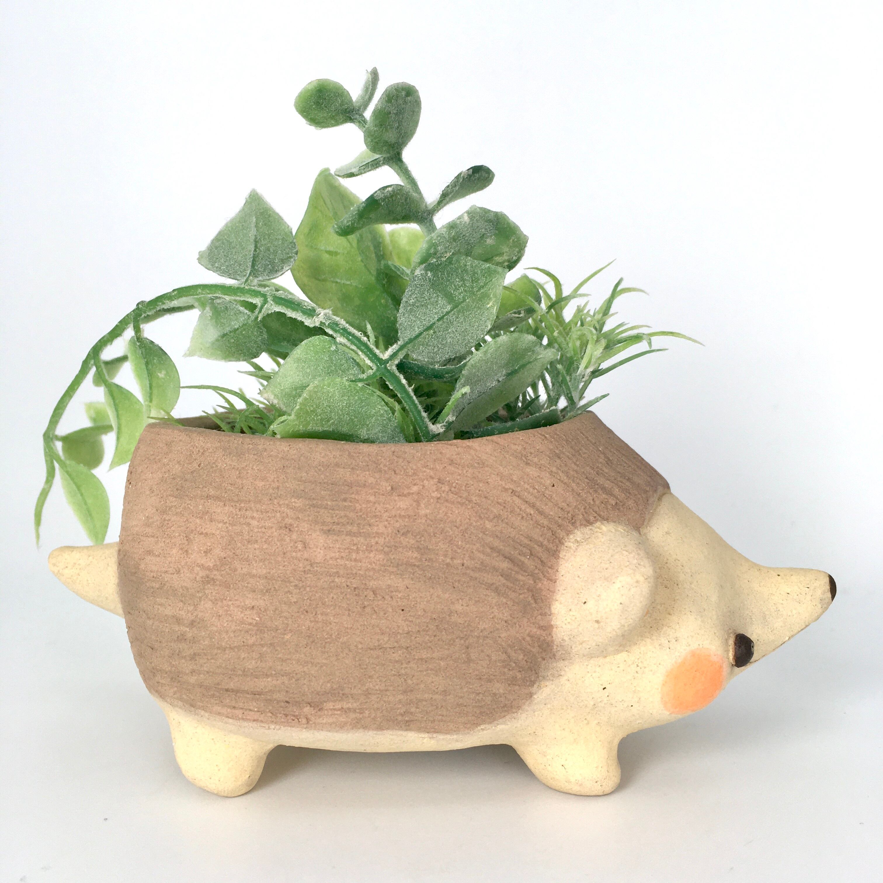 【月魚ひろこ】立体作品「ハリネズミの植木鉢」