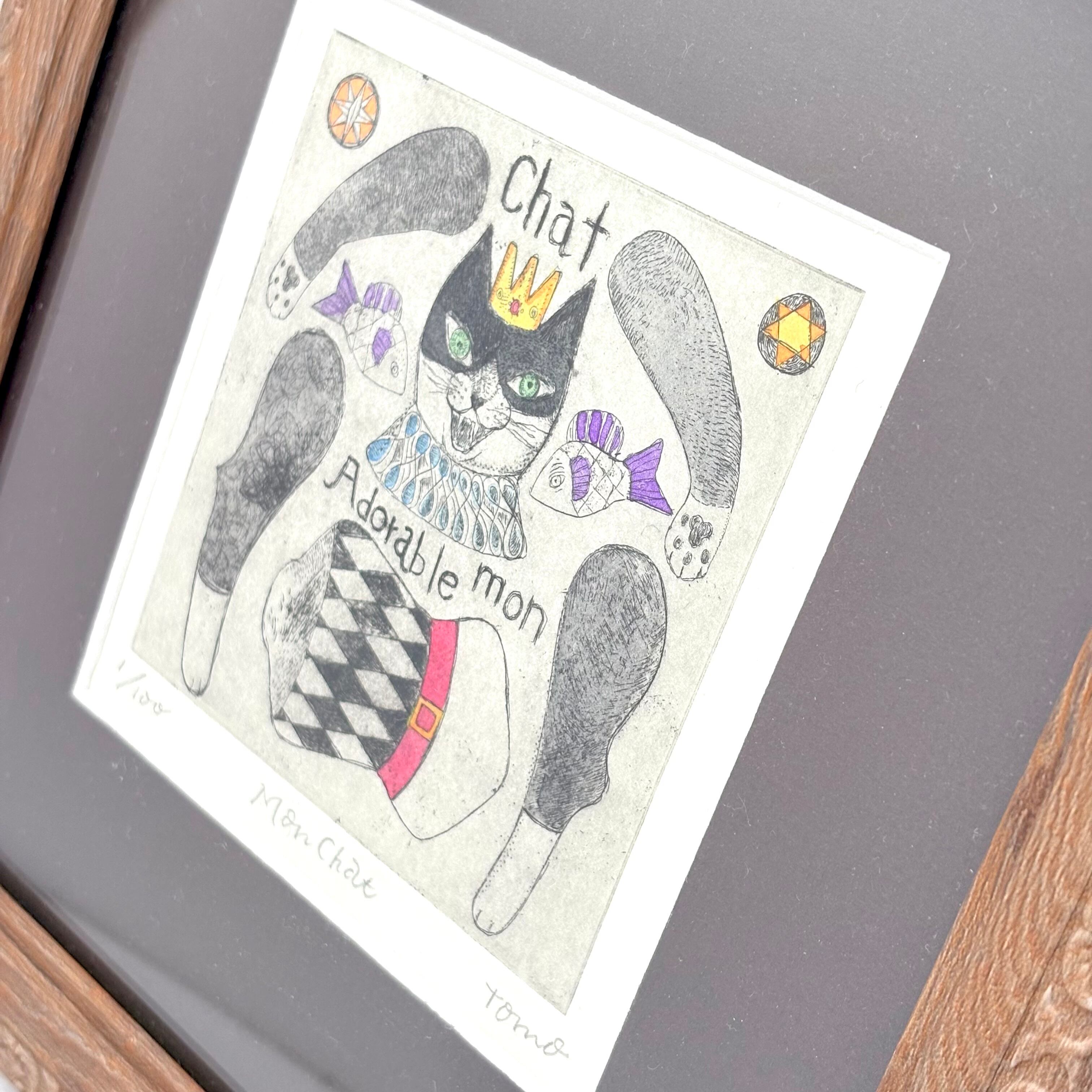 【キムラトモミ】銅版画「Mon Chat」