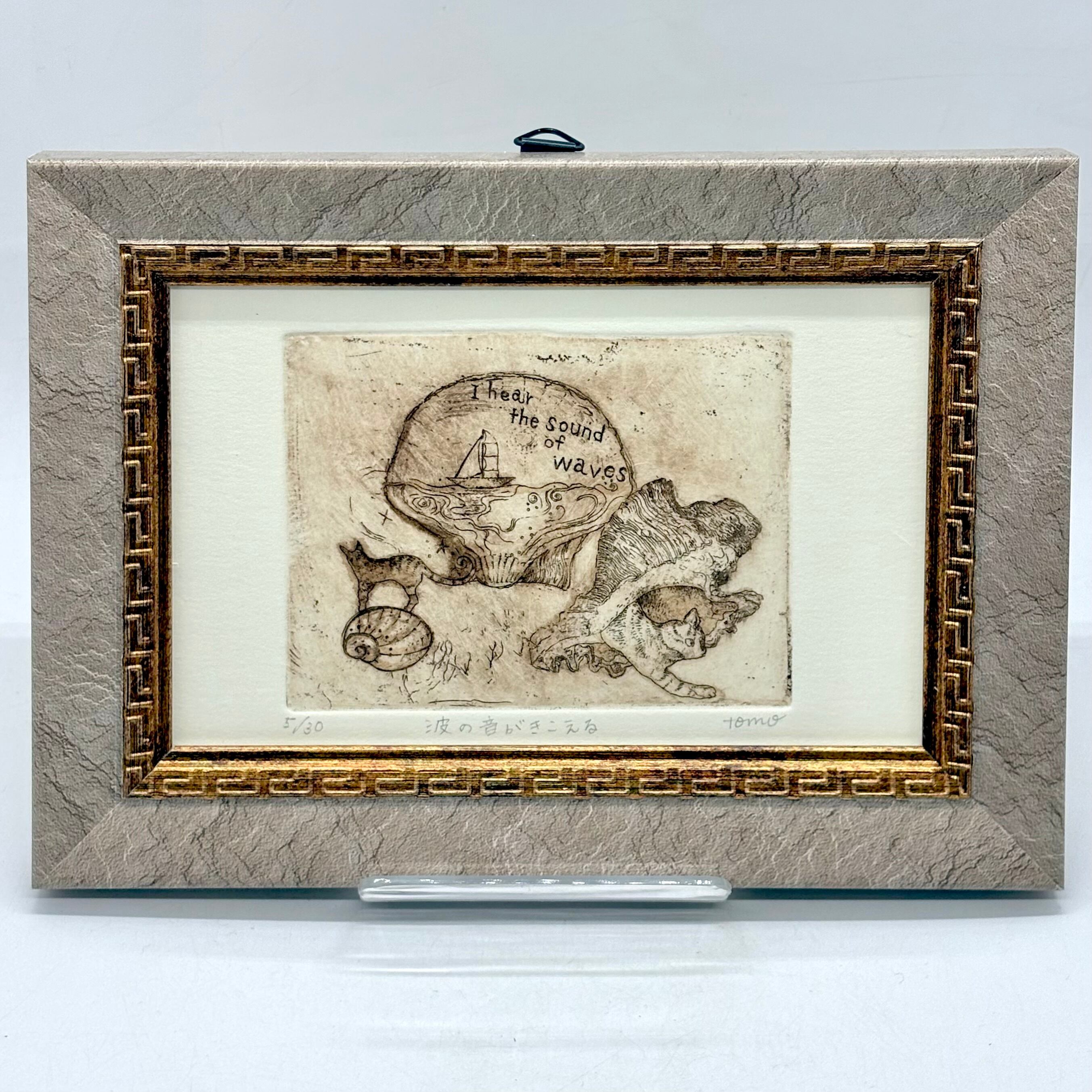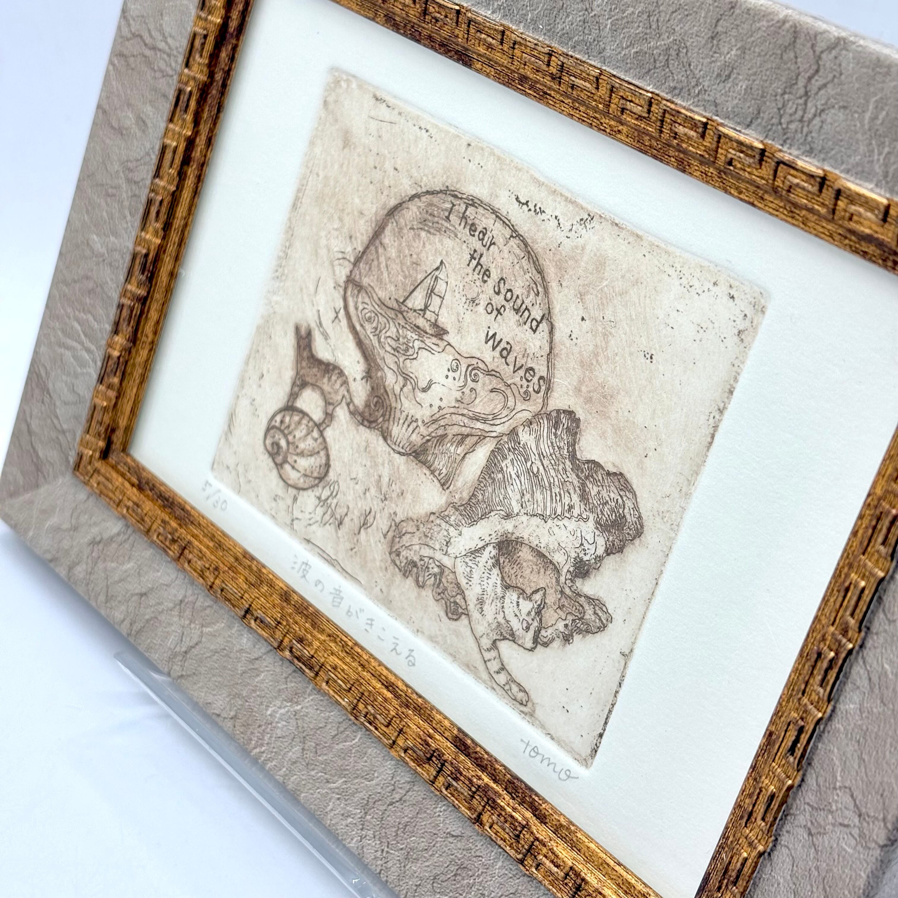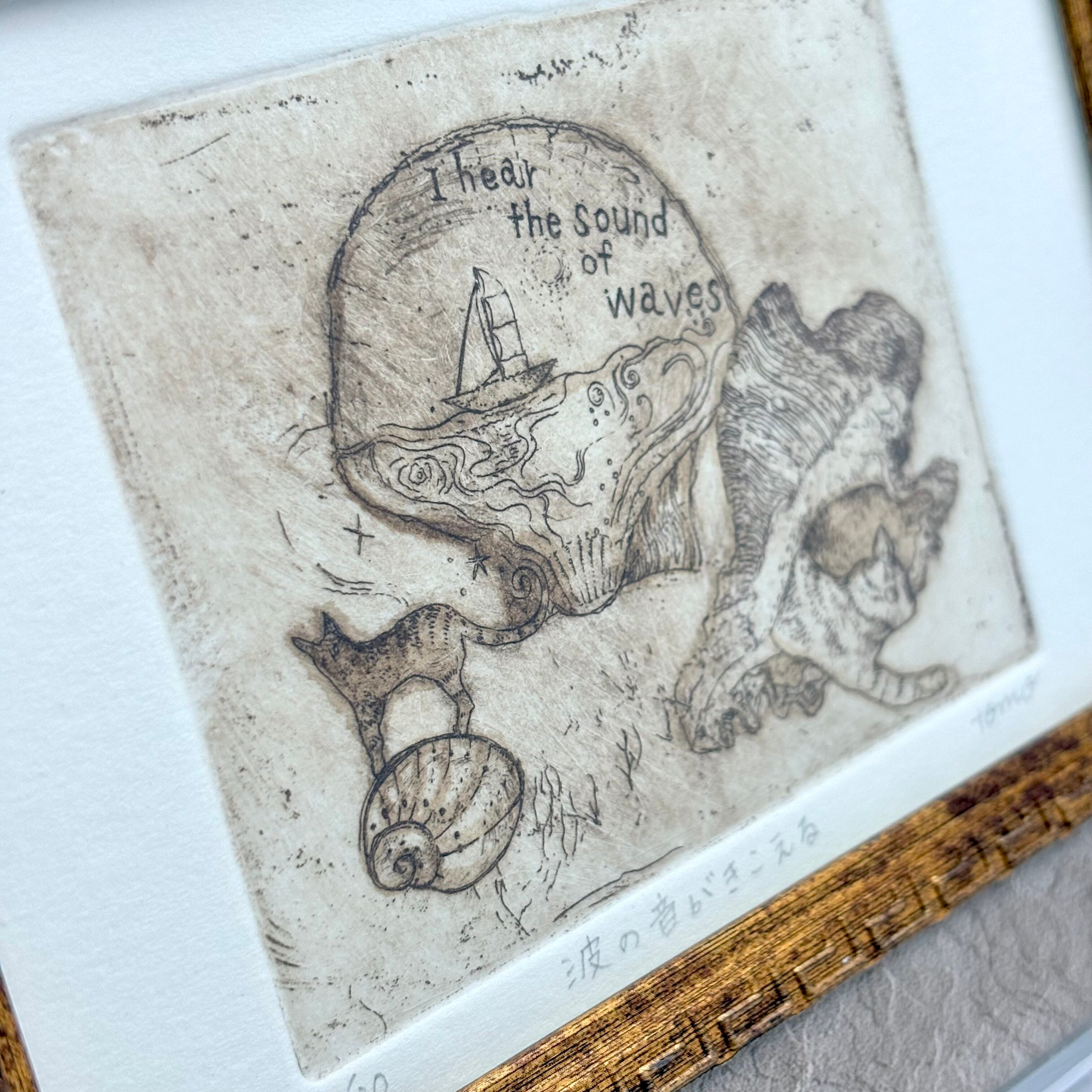 銅版画・手彩「波の音がきこえる」