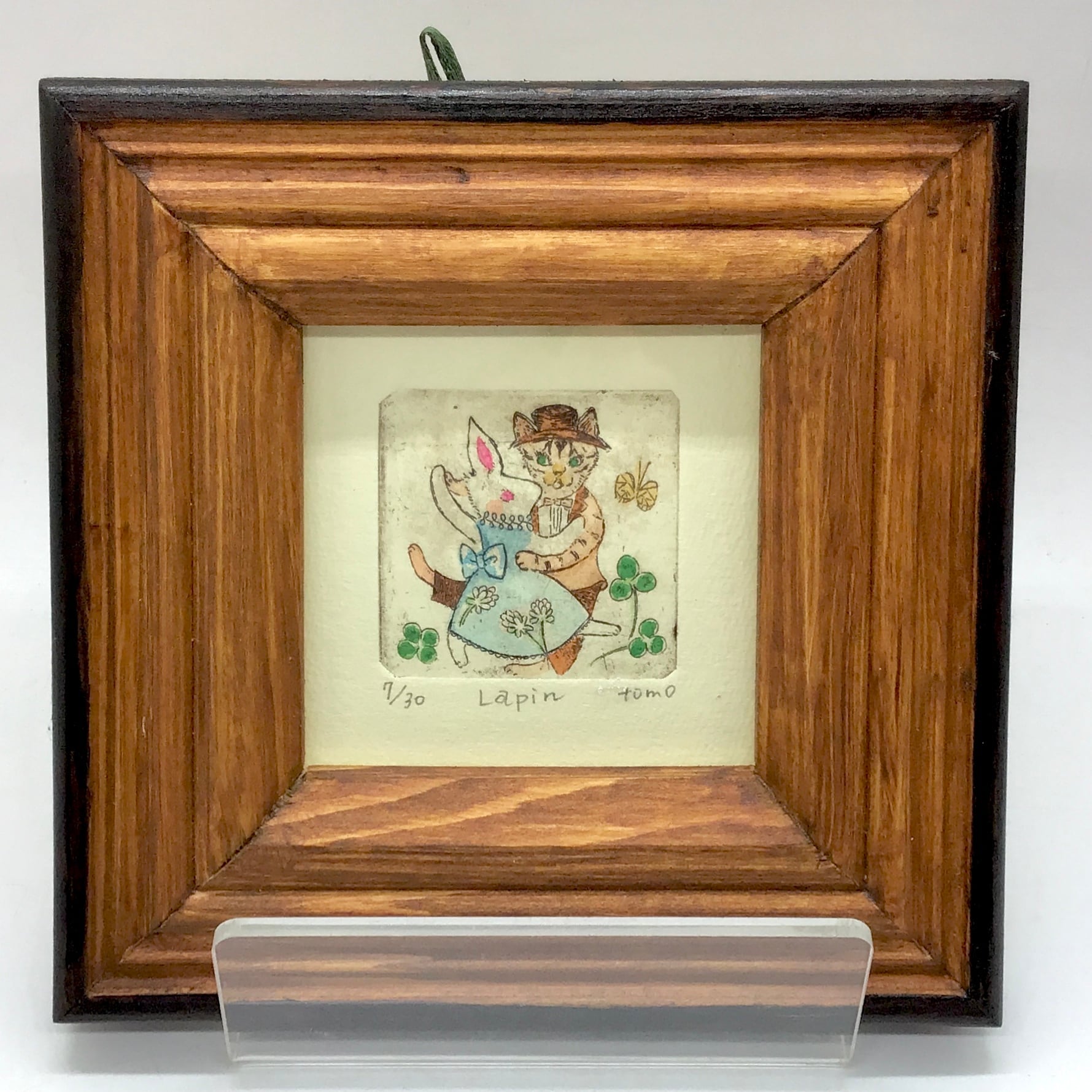 手彩色の銅版画を手作り額に納めました。