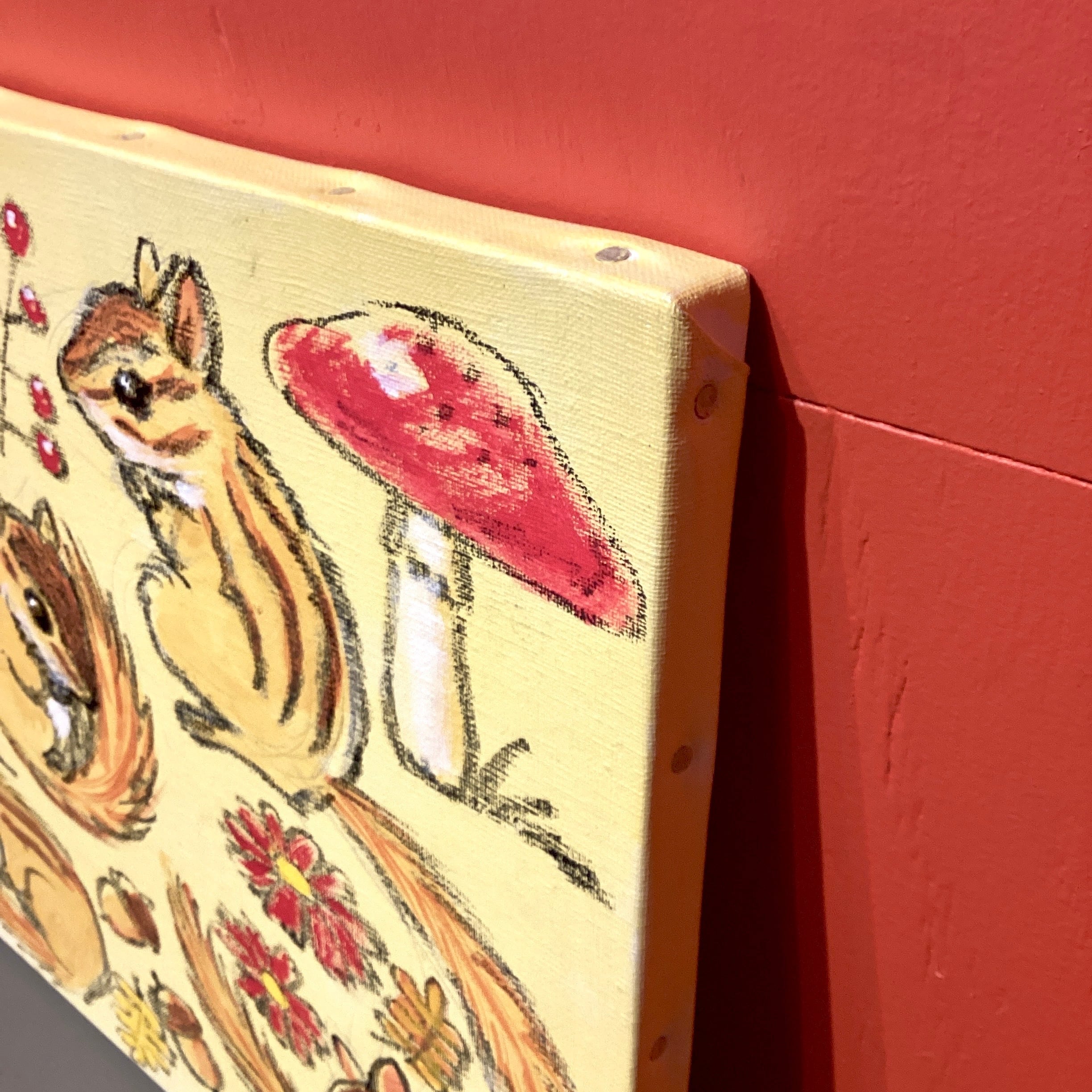 キャンバス原画 「リスとキノコがいっぱい」1