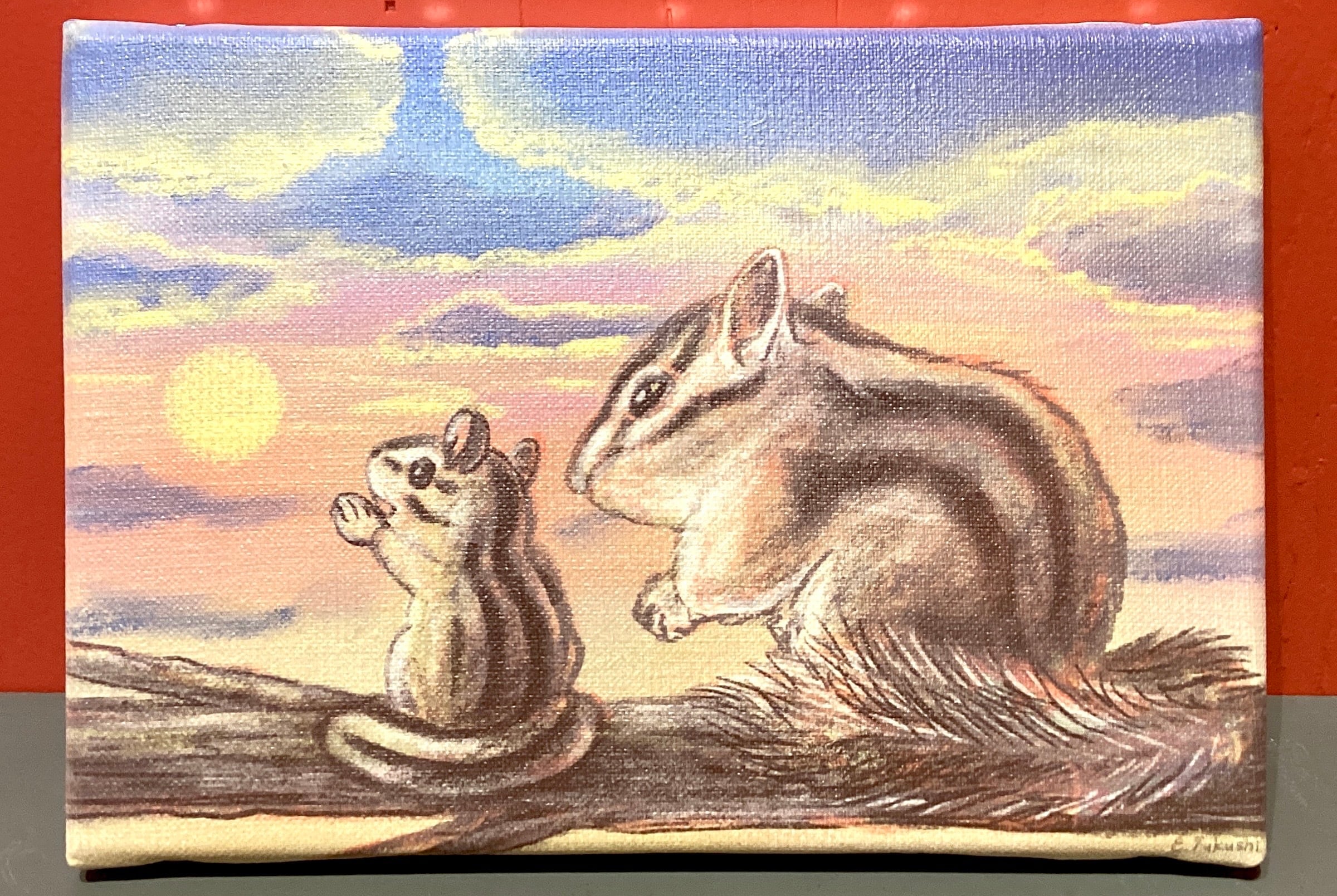 【福士悦子】複製原画「夕焼けとシマリスと」