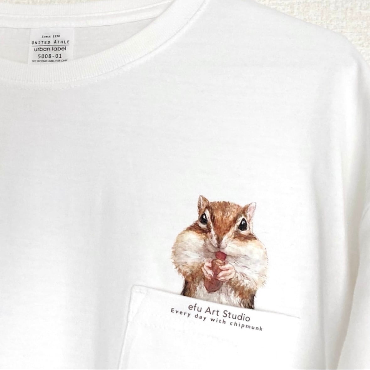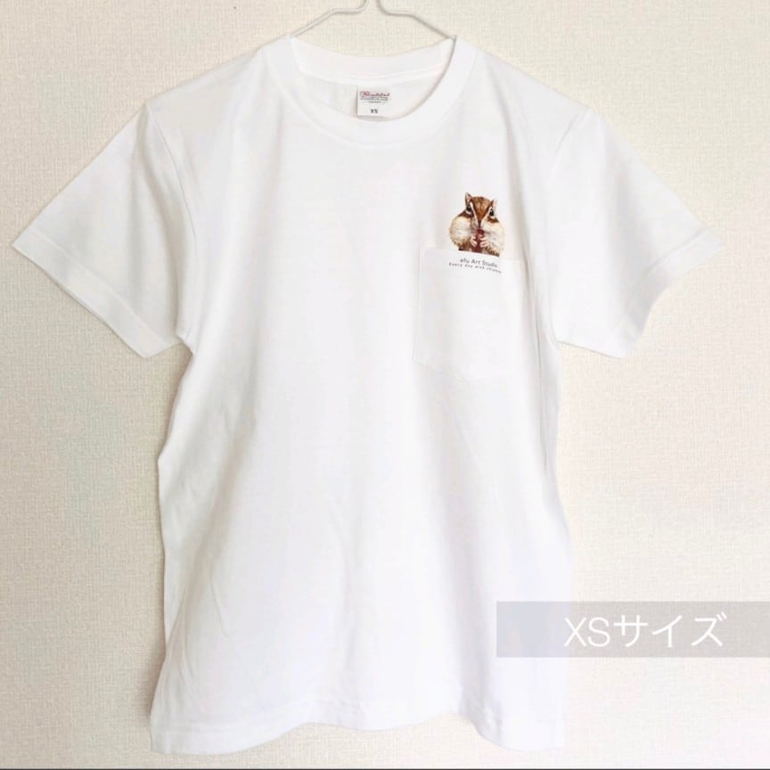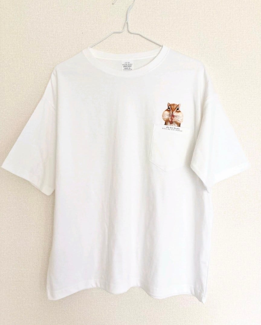 ポケットにおやつを蓄えるシマリスのTシャツです。
