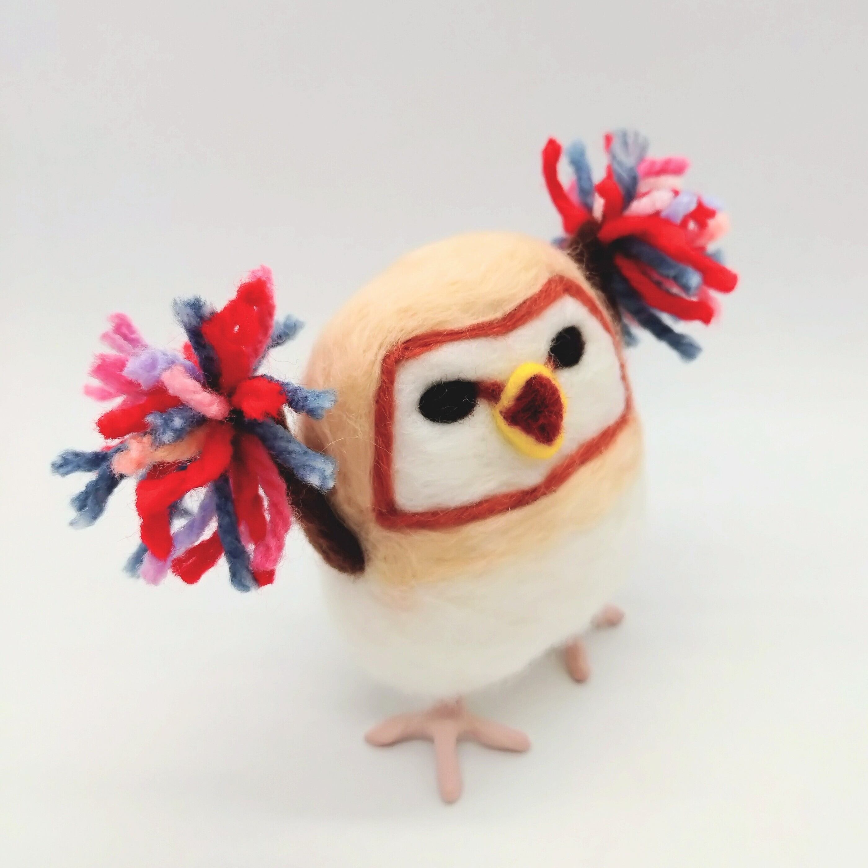 羊毛で動物モチーフのブローチ・置物等の作品、