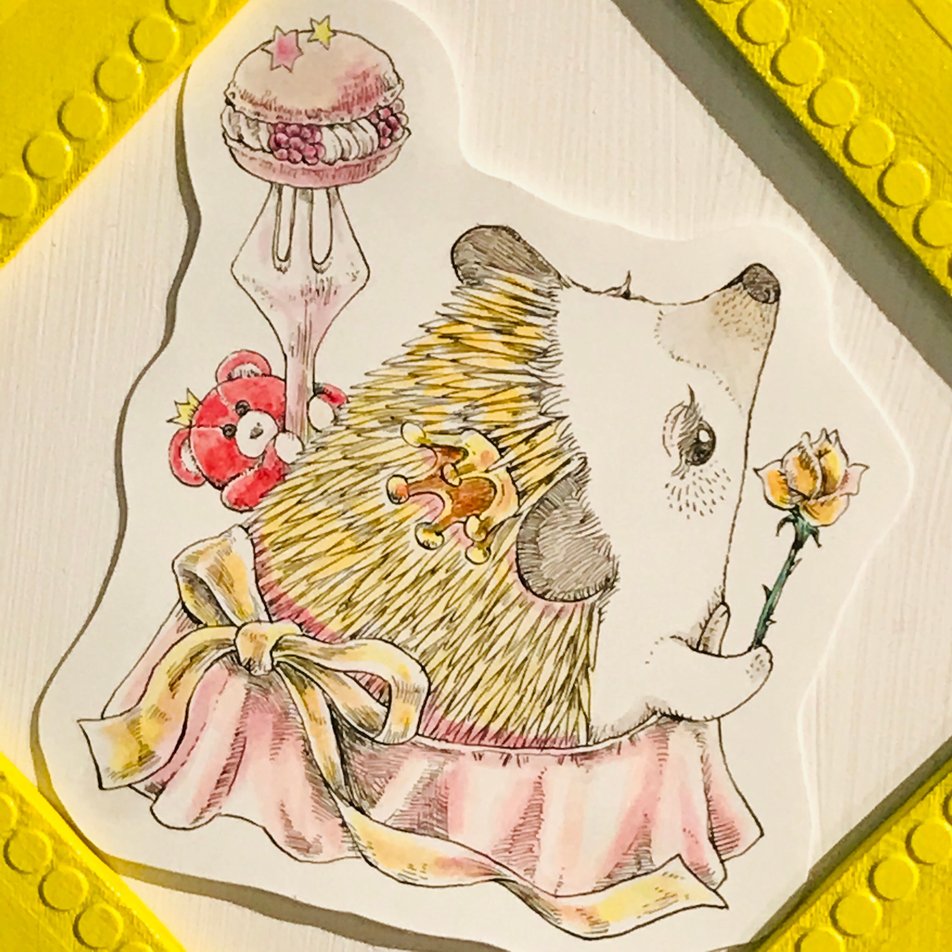 自身も飼っているハリネズミを中心に、動物をモチーフにしたメルヘンな世界観をつけペンを使い表現している。