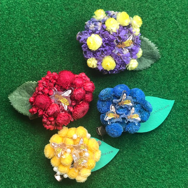 ムシメセン / ミツバチがやってきたブローチ+ヘアクリップ(ドライフラワー)④