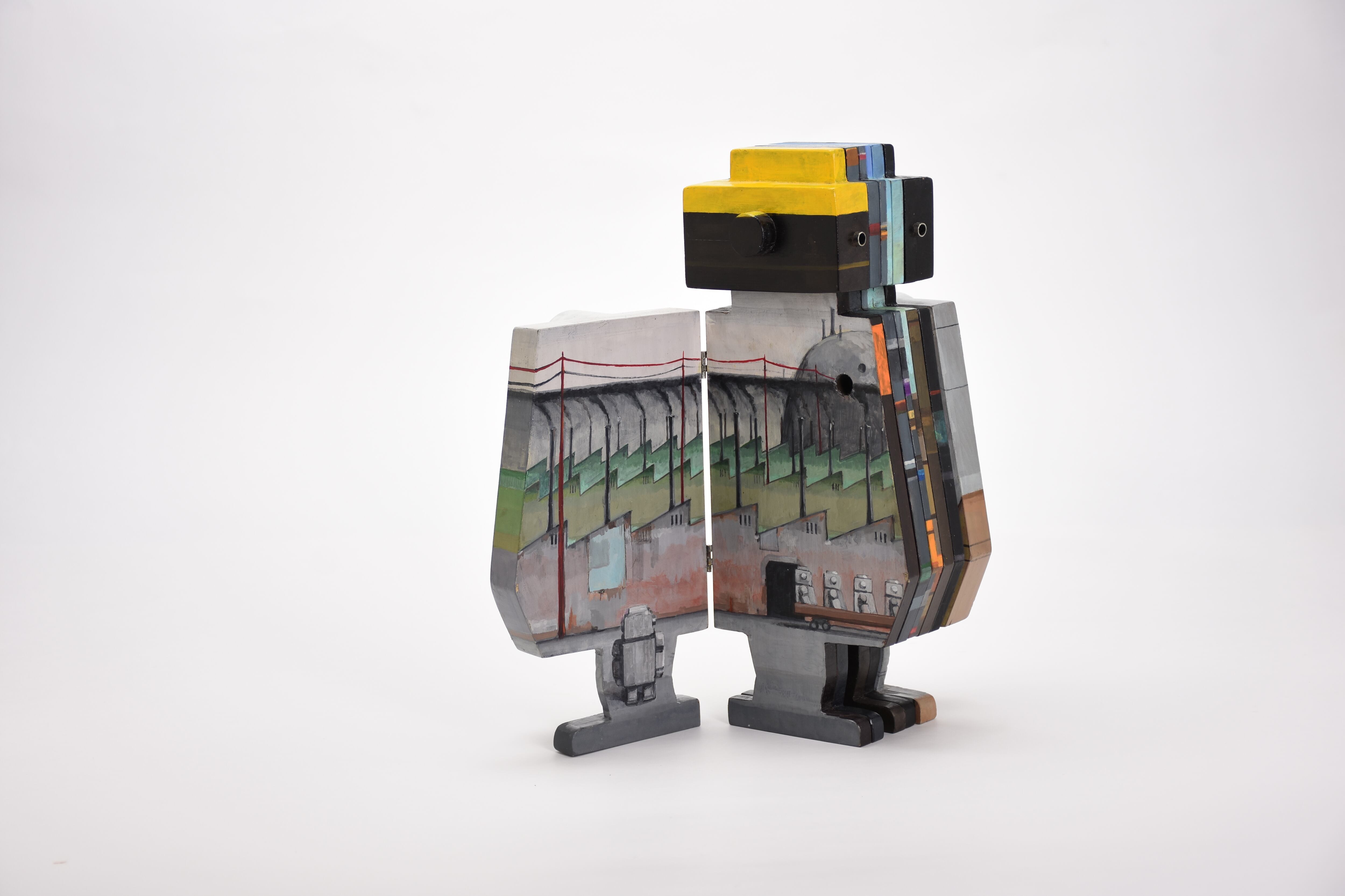 錆びたロボットや哀愁漂うメカをモチーフにイラストレーション、オブジェ、絵本など様々な作品を制作している。