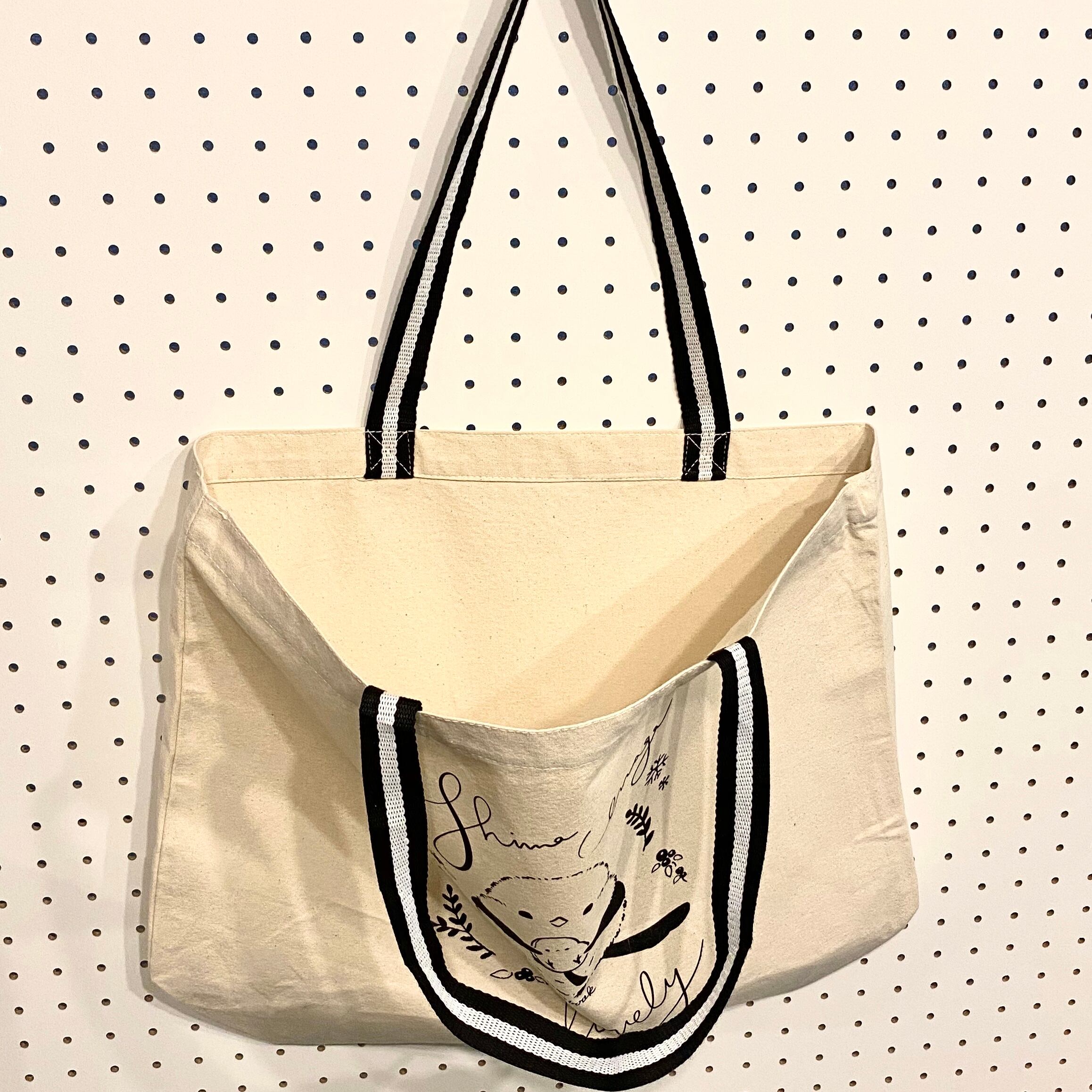 個展会期中に開催した「ぴよ手帖コラージュワークショップ」でぴよ手帖さんにコラージュしていただいた絵をトートバッグにシルクスクリーンで刷ったものになっております。