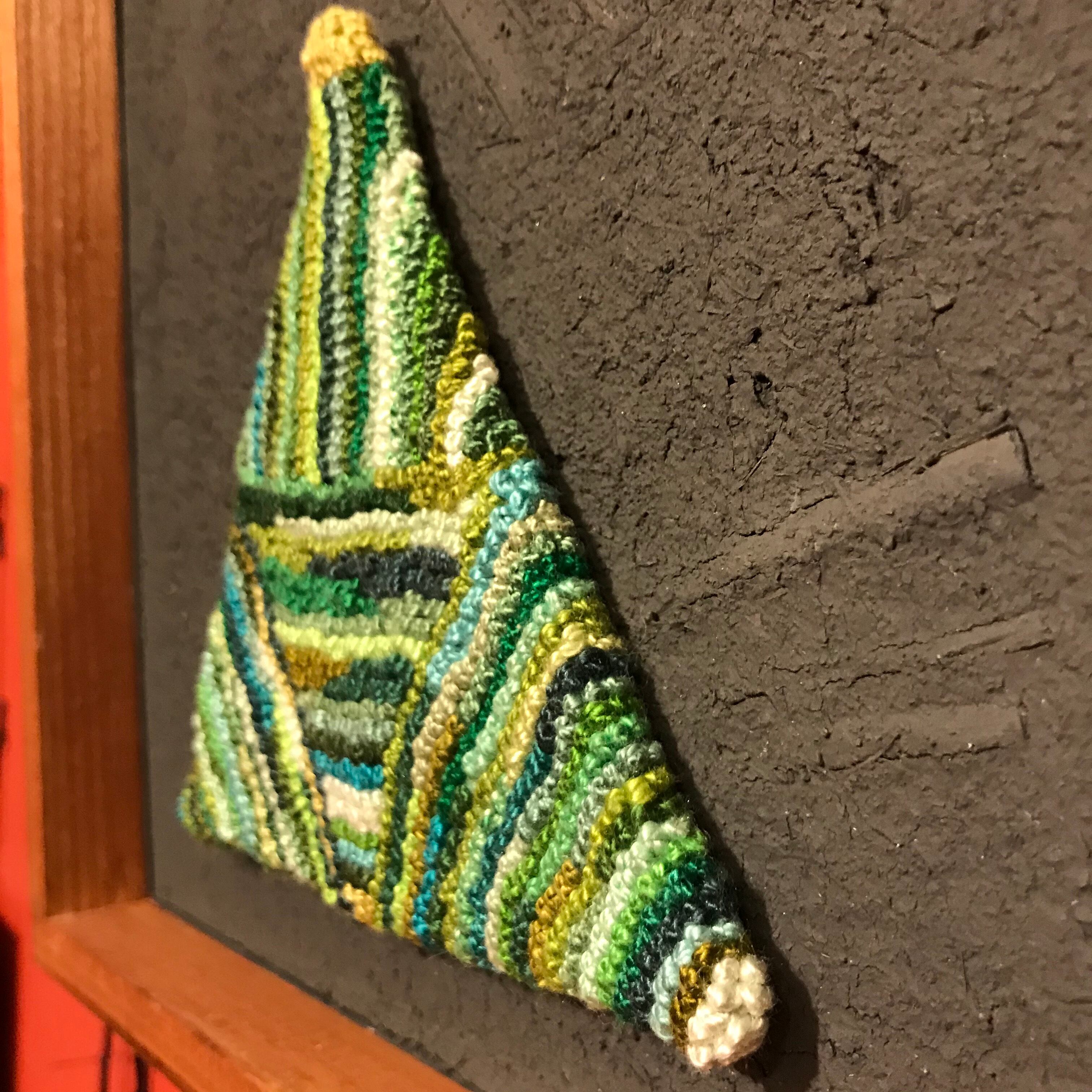 刺繍糸を玉結びというひとつの技を使って、インテリアにもなるブローチを制作しています。