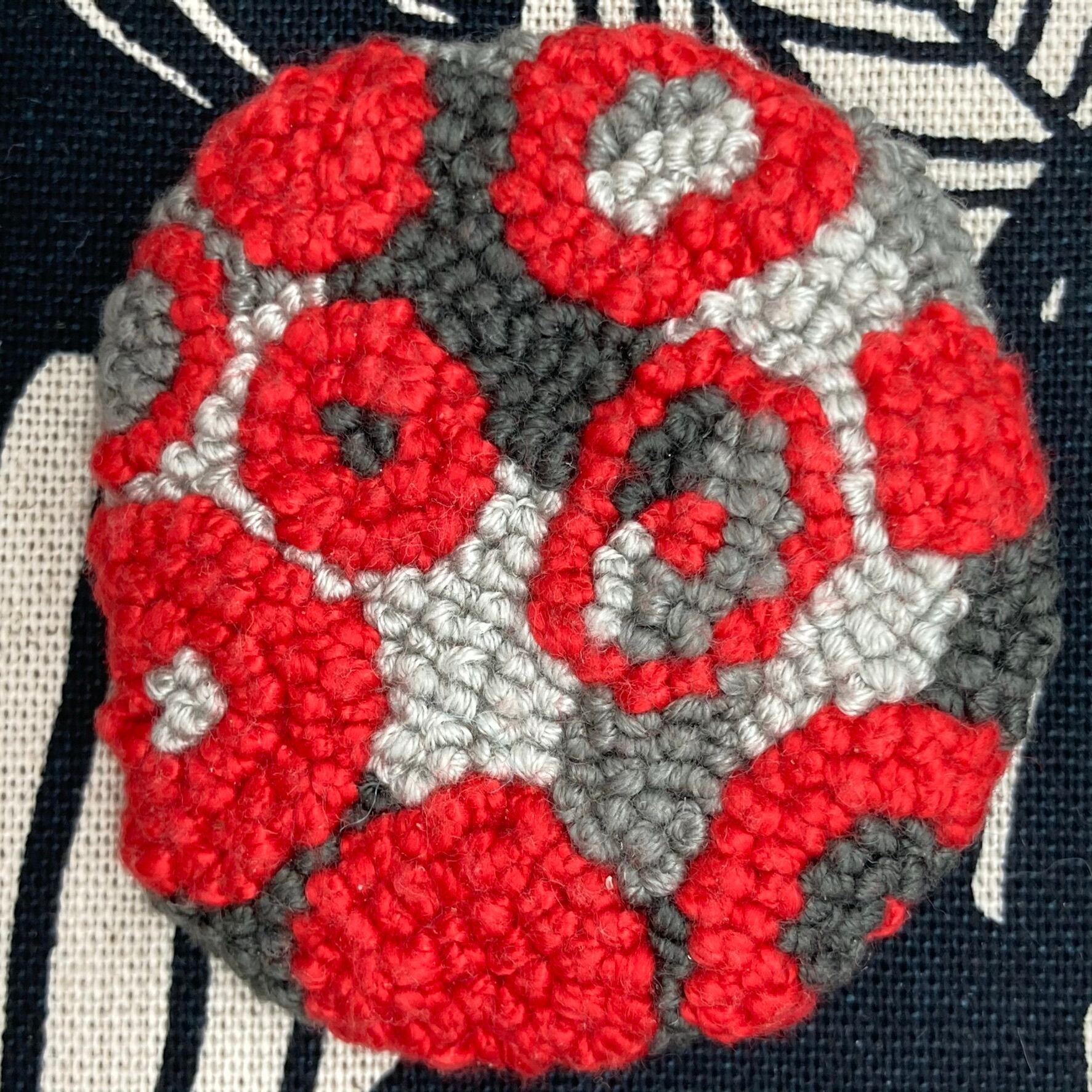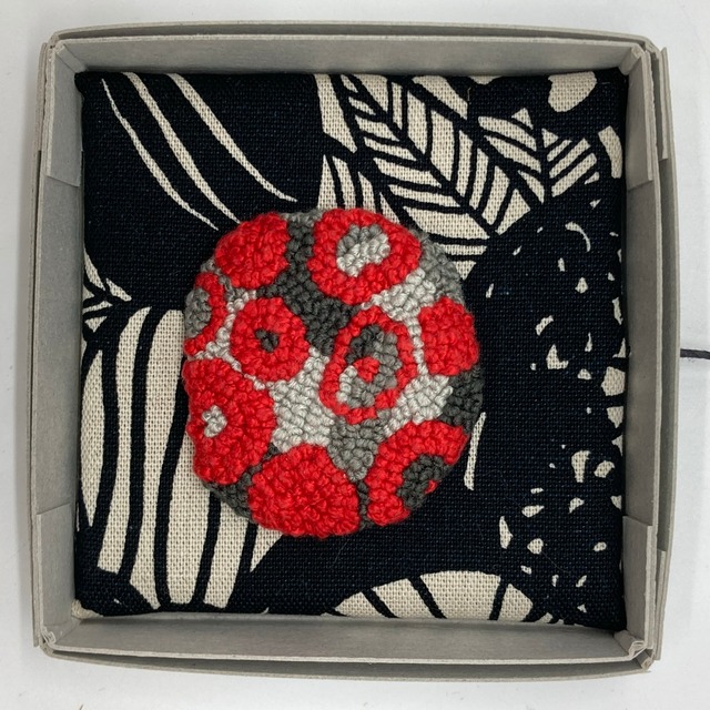 刺繍糸を玉結びというひとつの技を使って、インテリアにもなるブローチを制作しています。
