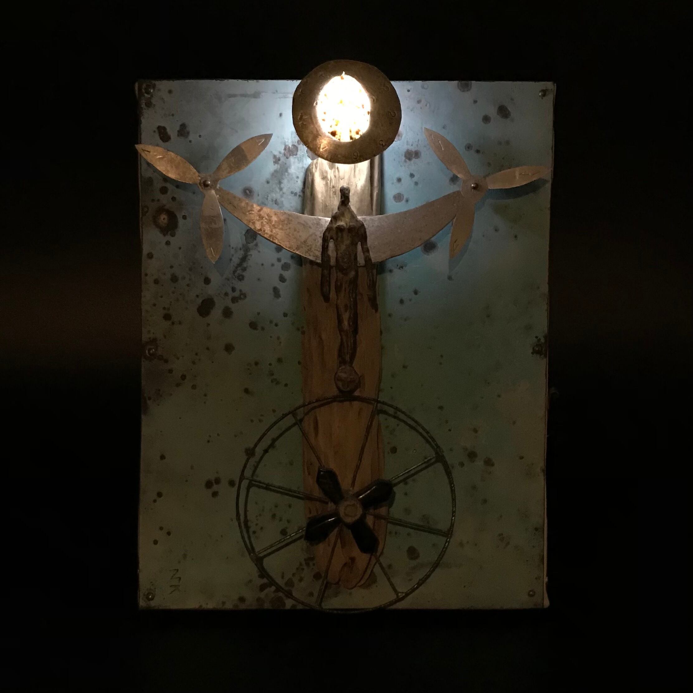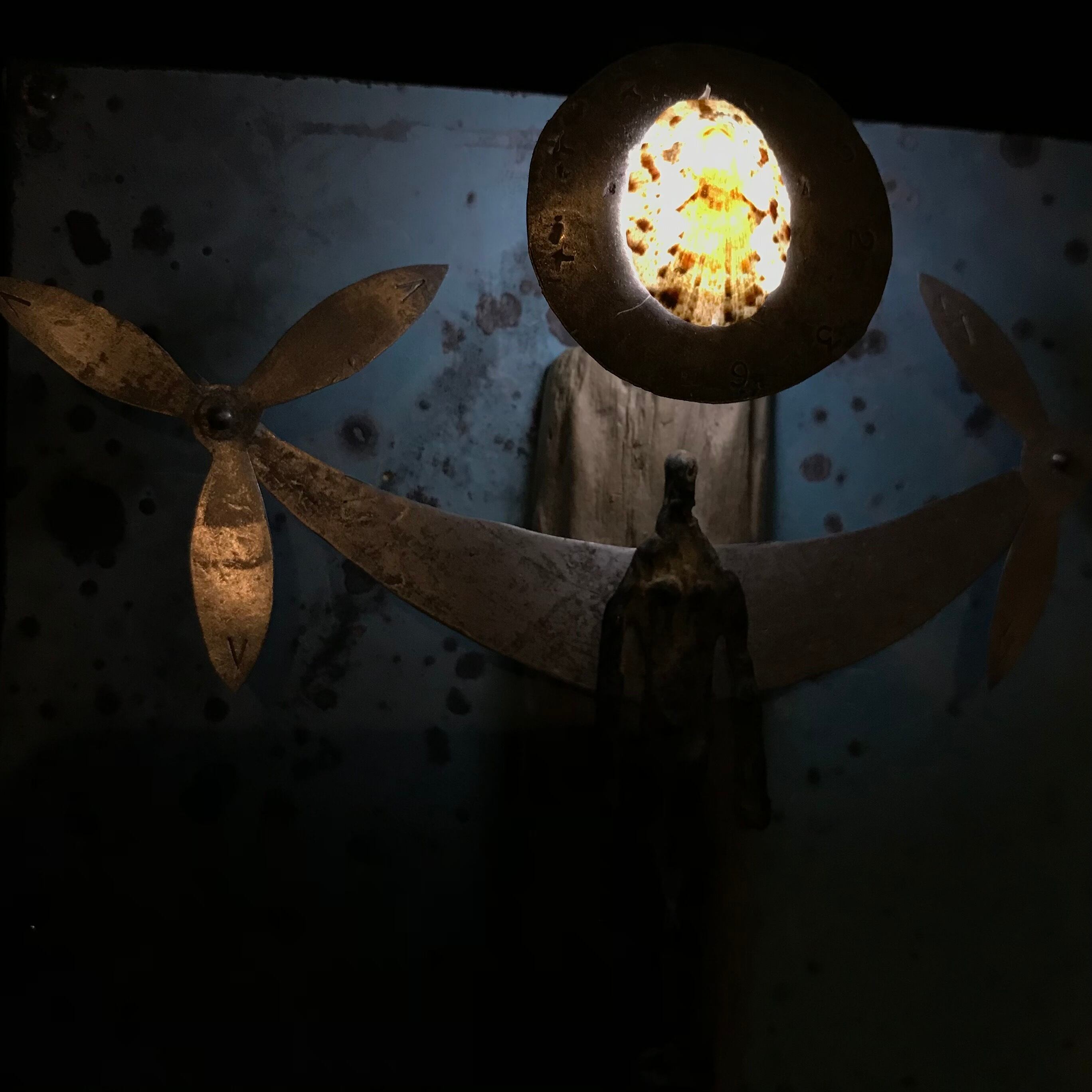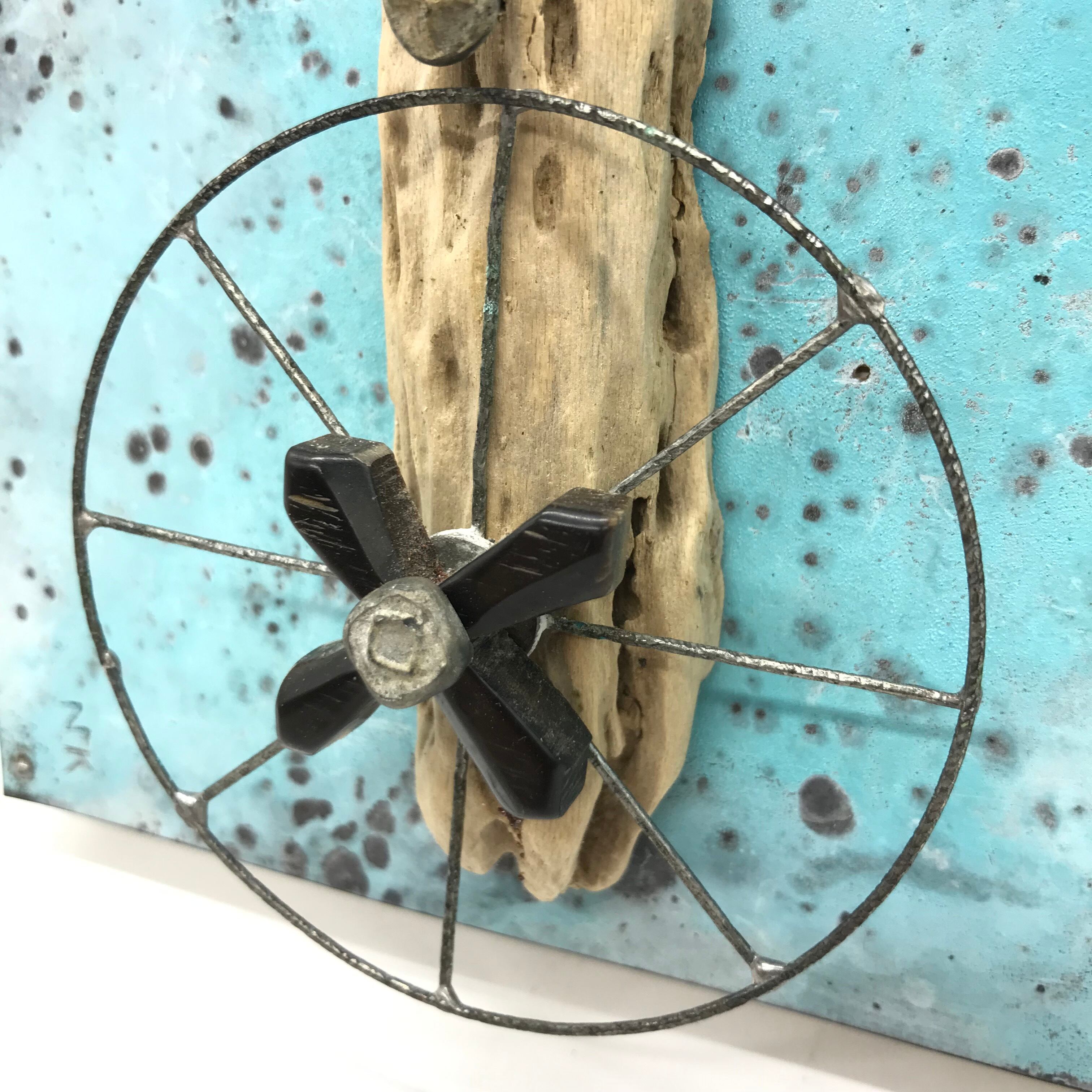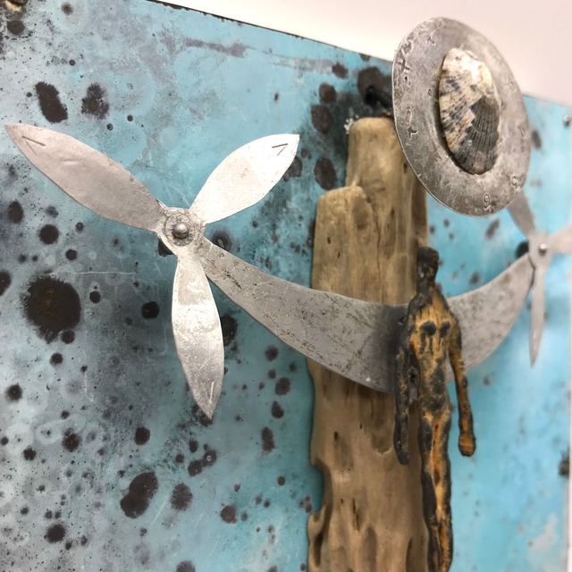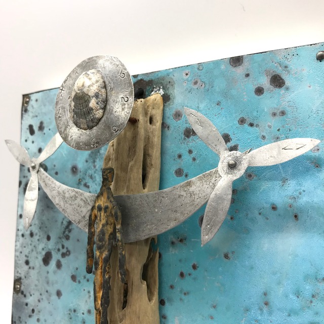 1990年頃から海岸線拾得物、流木、錆びた鉄、腐触したアルミニウム、その他ジャンクなメディアでライティングオブジェを創作、作品展は個展、グループ展を青山スペースYUI、銀座うえすと、その他などで32回。最近のコンセプトは「朽ちゆくものの残照」