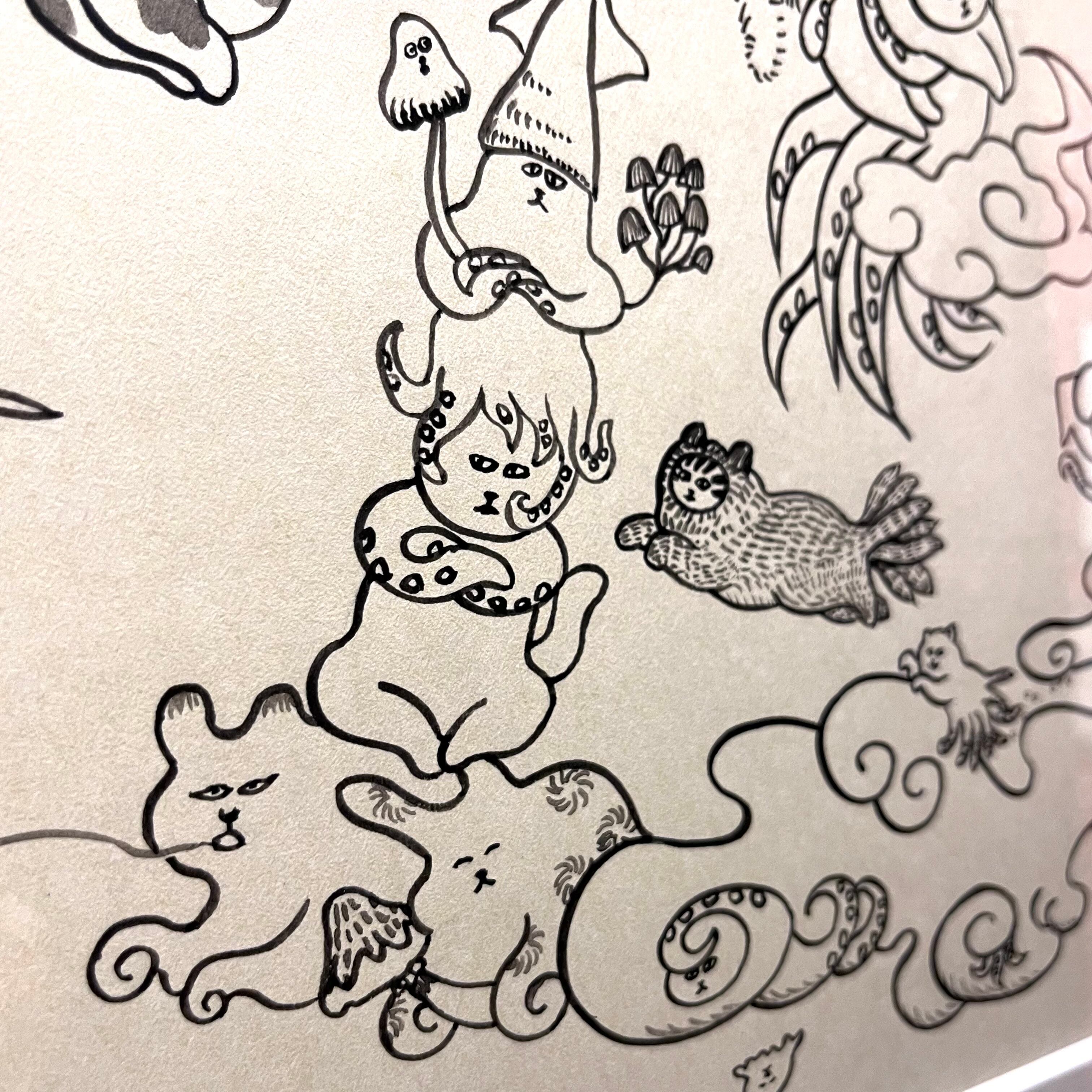 【すぎはらゆり】原画「烏賊猫鳥獣戯画〜はじまり〜」