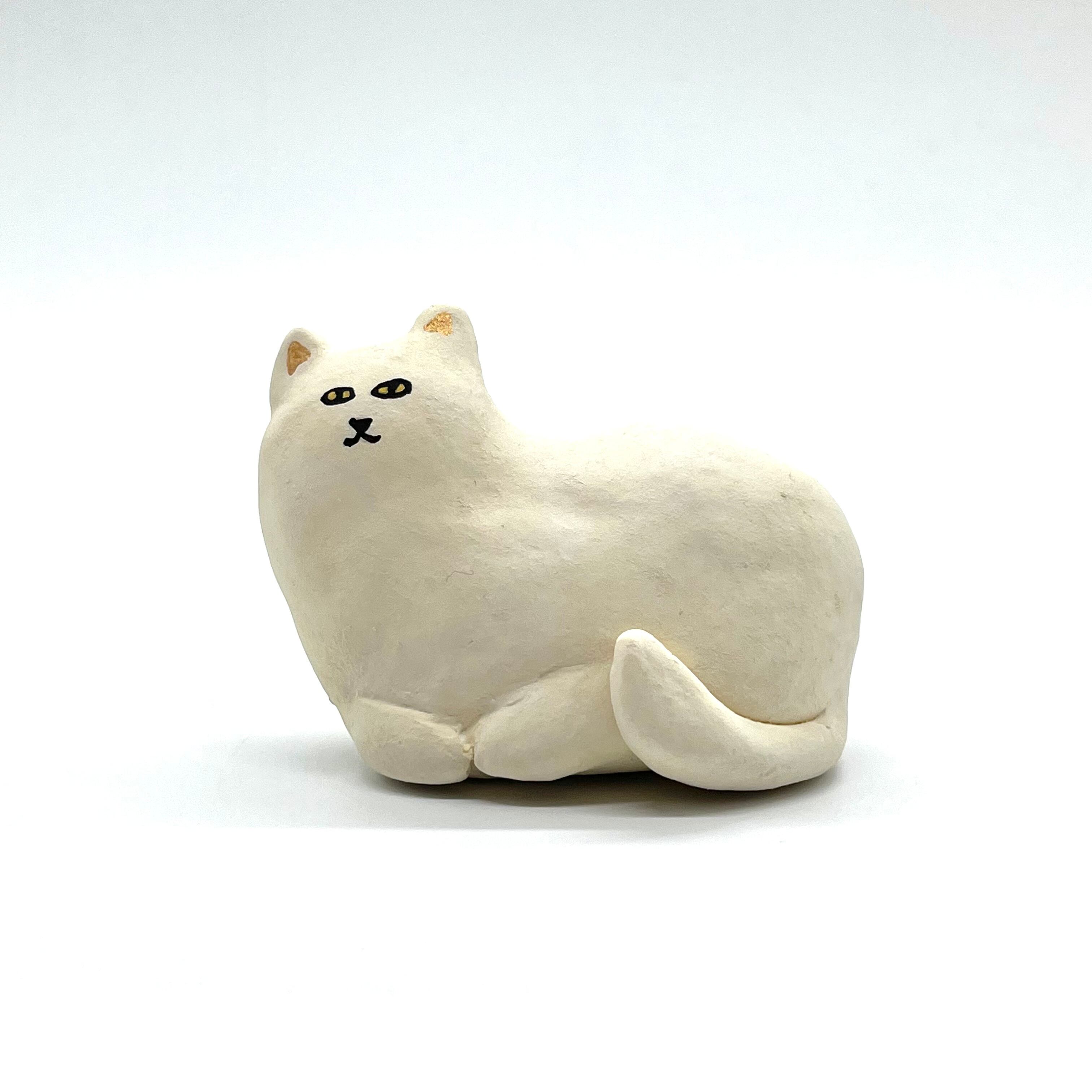 【すぎはらゆり】オブジェねこちゃん「しろねこ(右)」