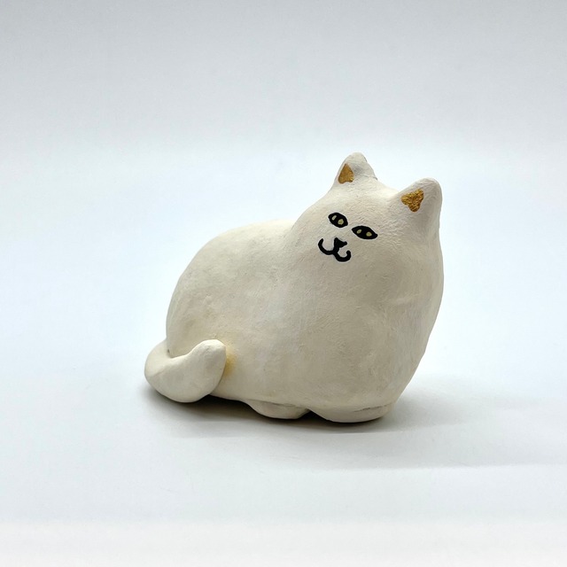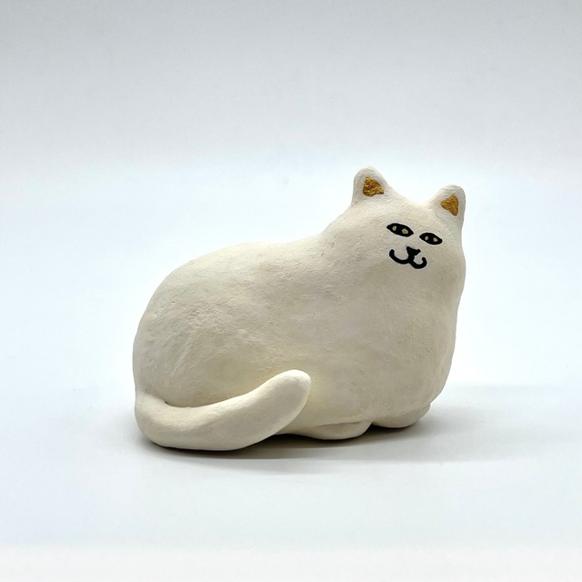【すぎはらゆり】オブジェねこちゃん「しろねこ(左)」