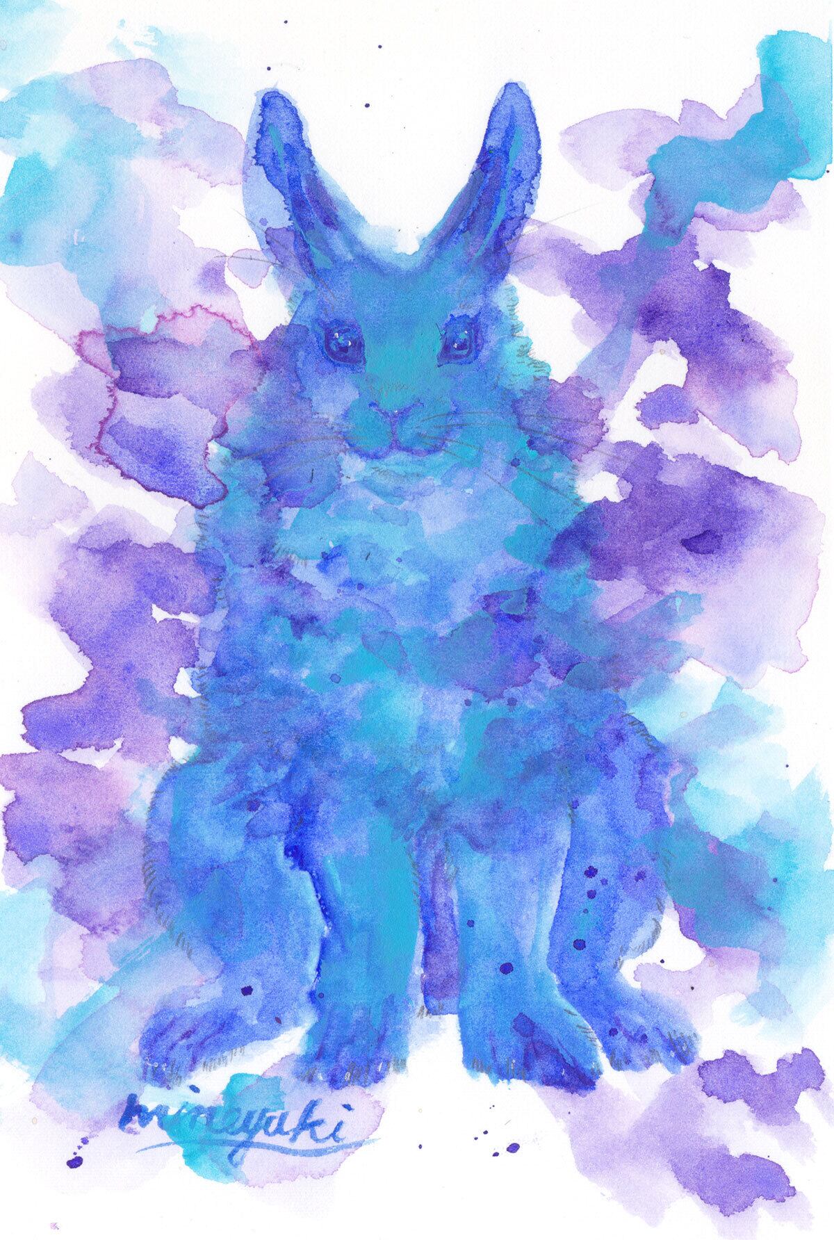 原画「Watercolor Rabbit -Spring blue-」