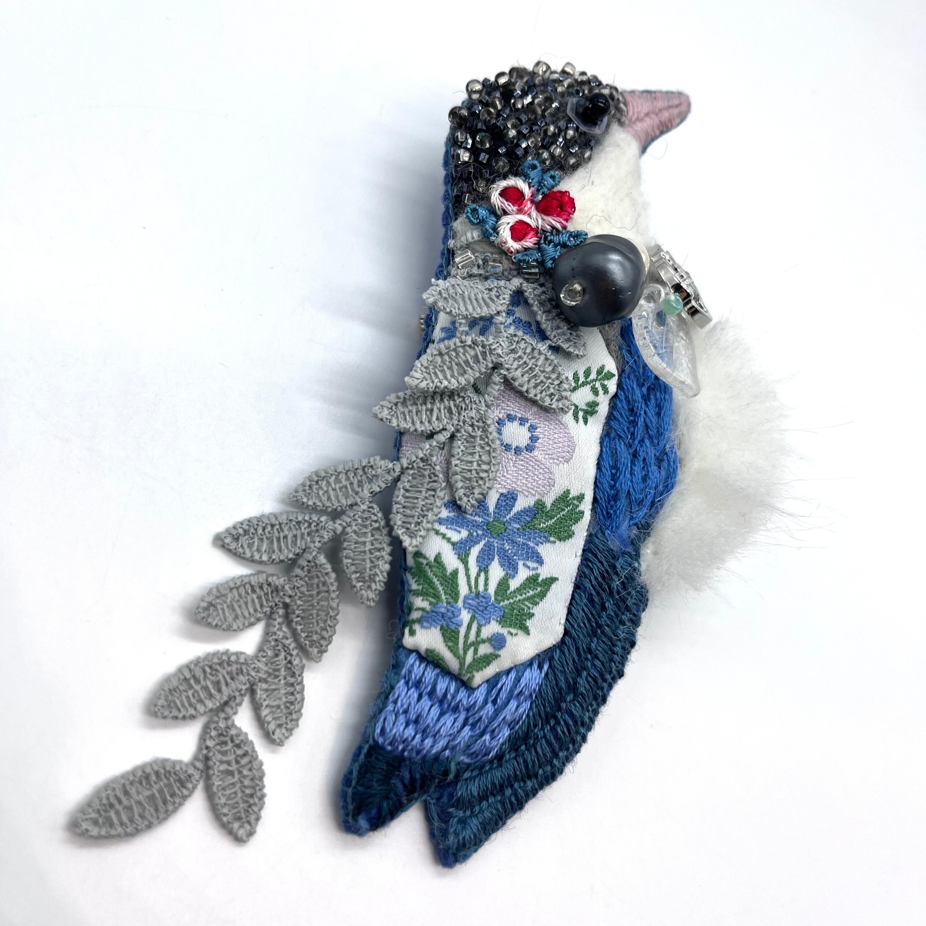 鳥をモチーフに、ニードルフェルティングと刺繍、