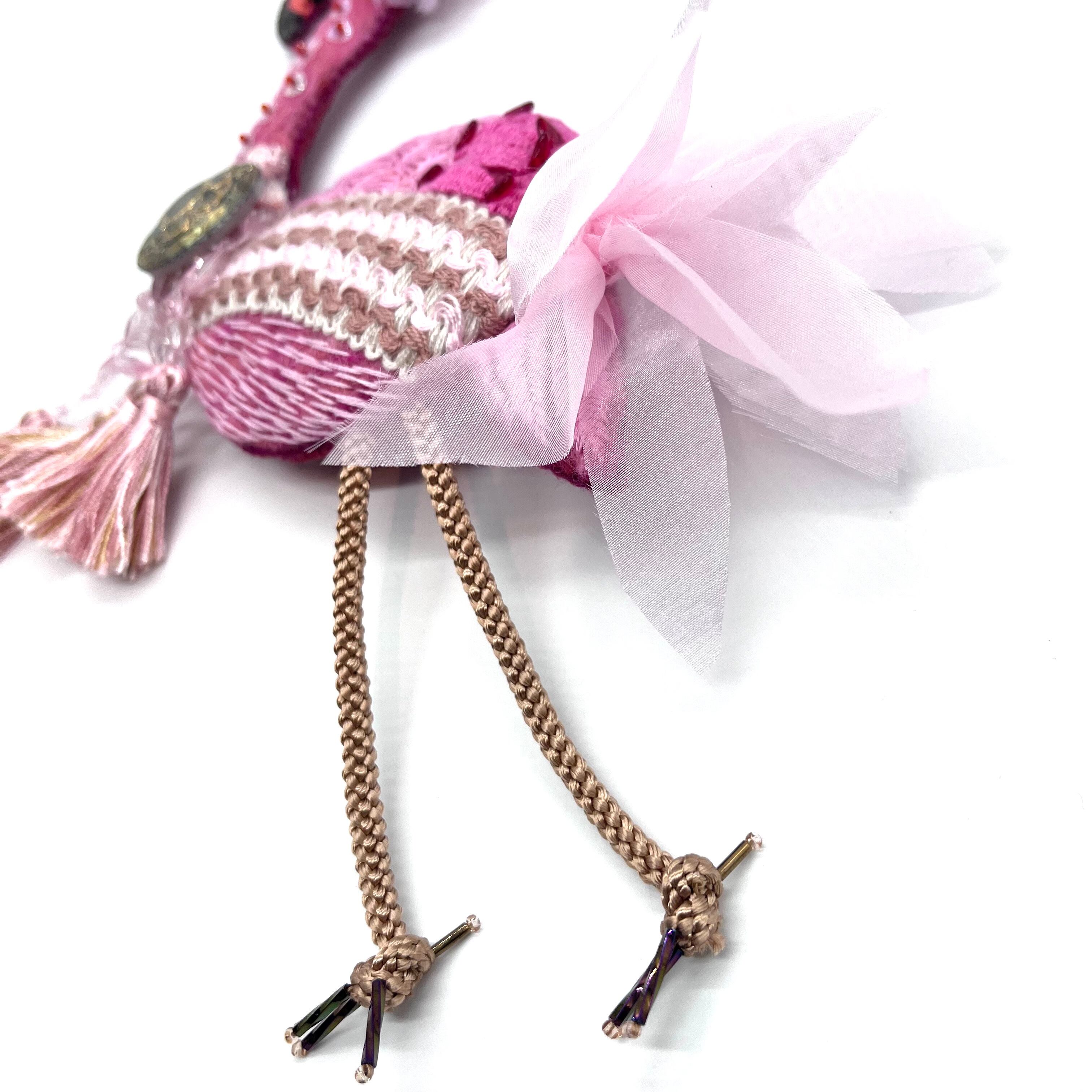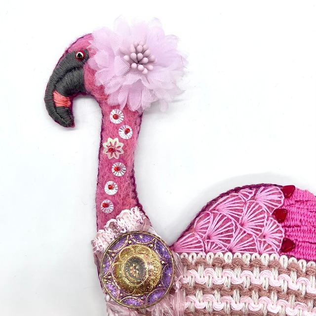 鳥をモチーフに、ニードルフェルティングと刺繍、