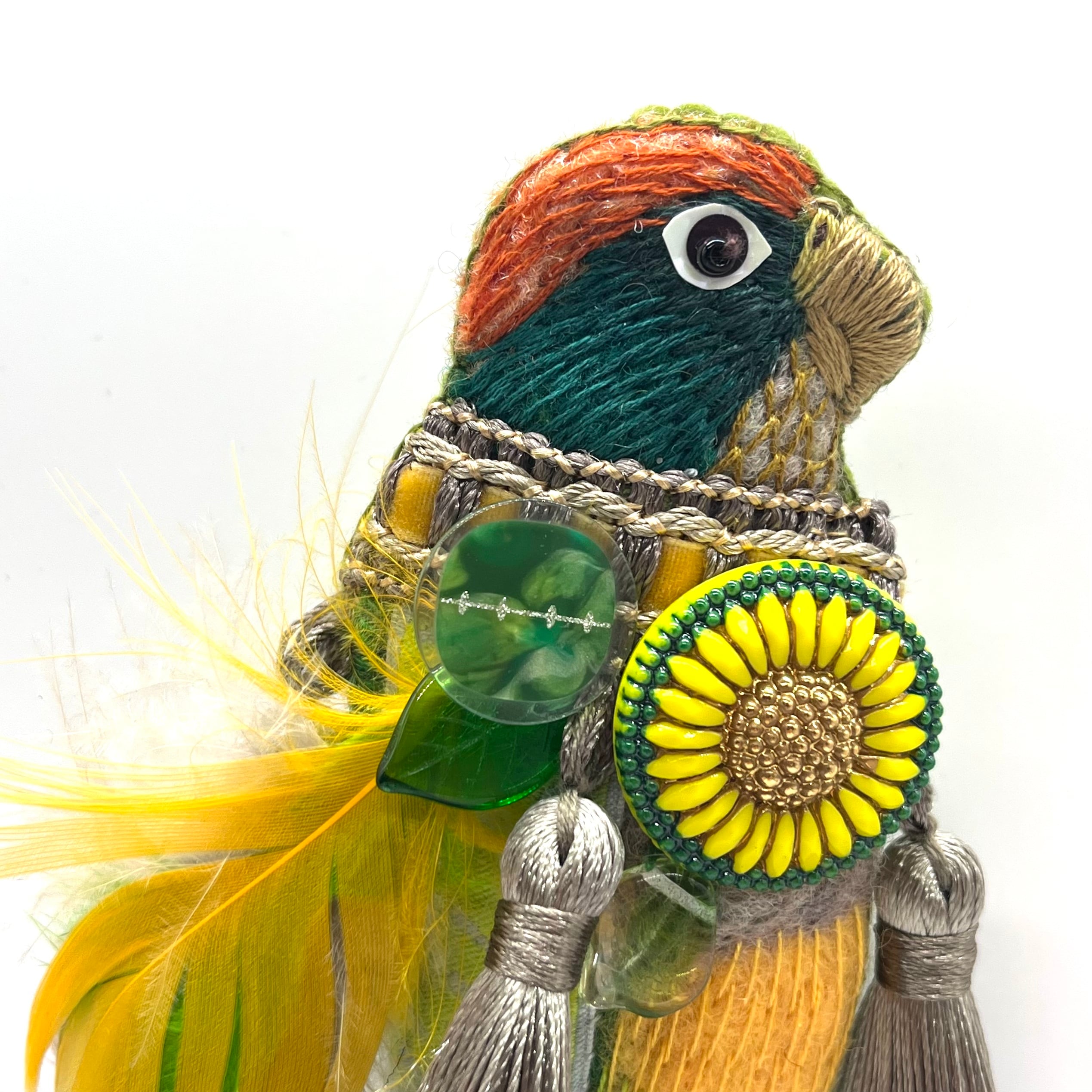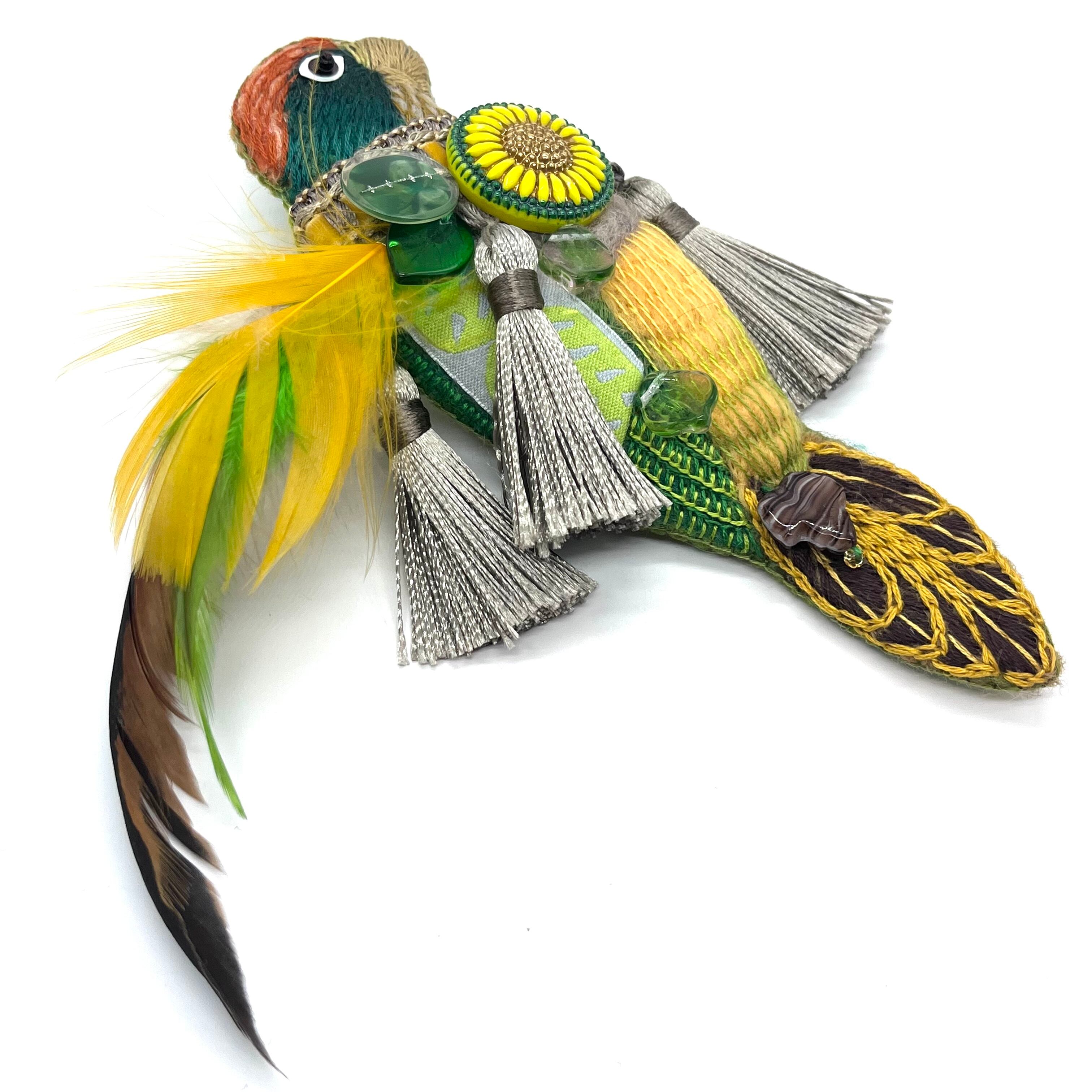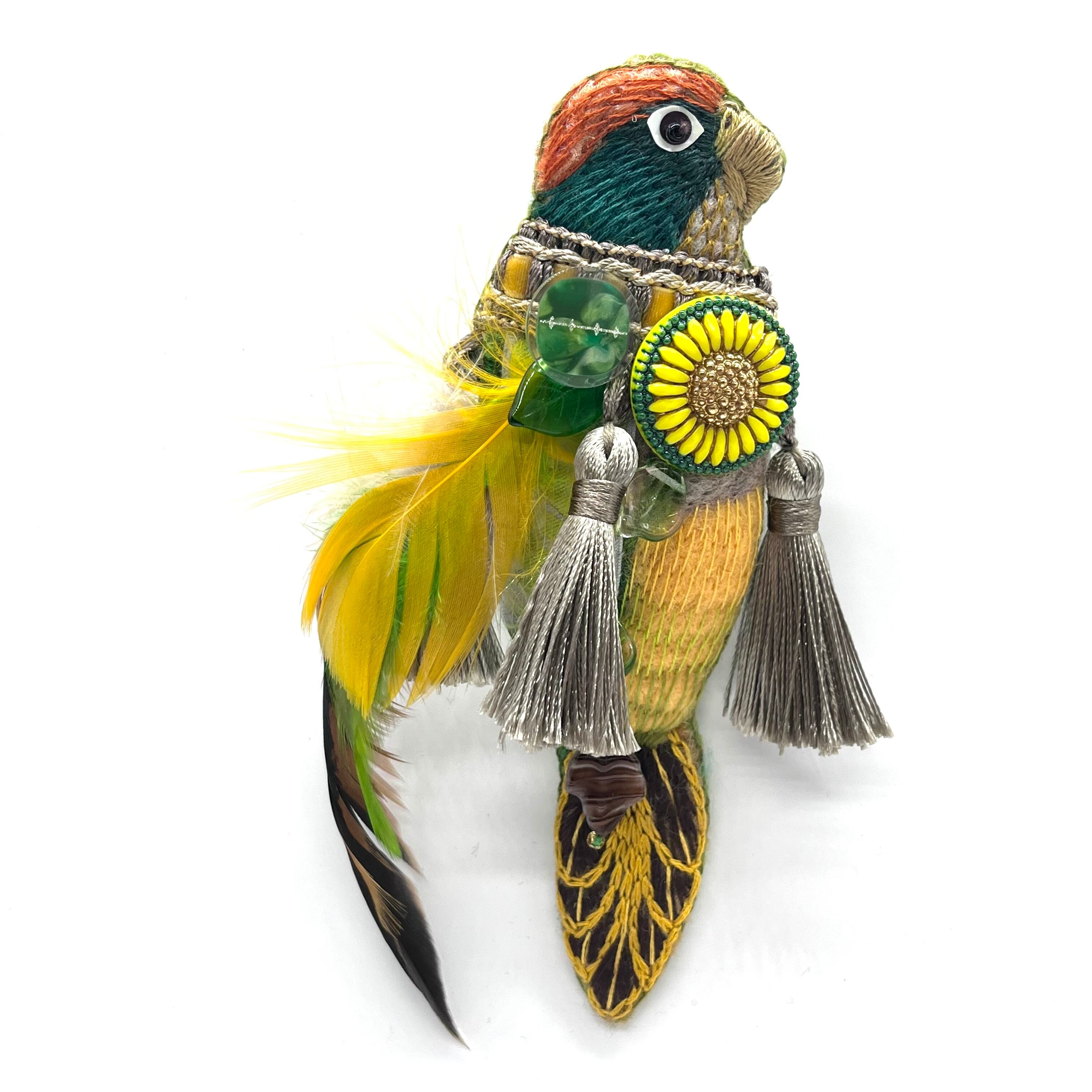 鳥をモチーフに、ニードルフェルティングと刺繍、