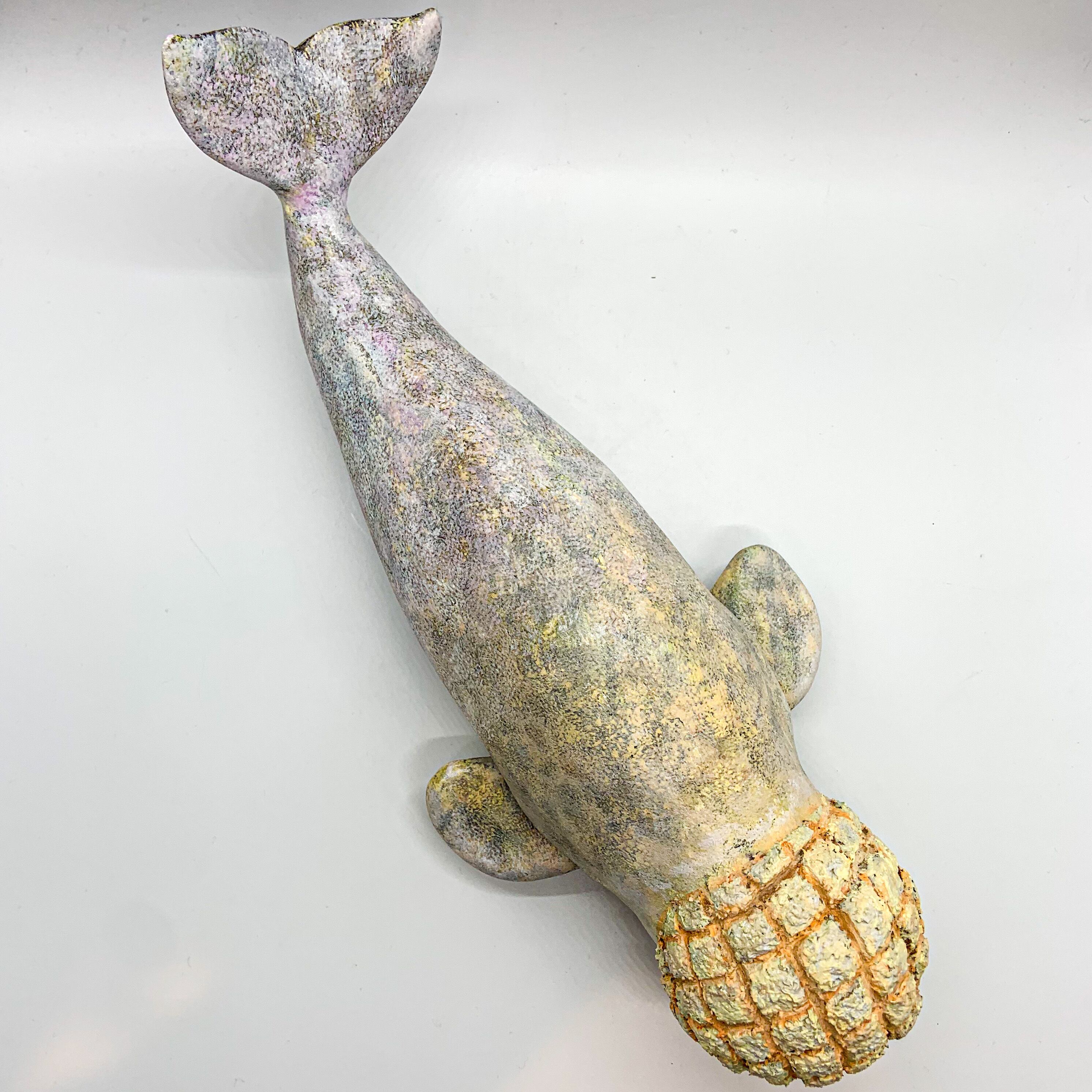 イッカクに近い種で、くちばしは無く背びれも無い。尾びれと胸びれは丸みを帯びており、肉厚。体色はクリ一ム色。子は黒色から暗灰色で、成長するにつれて色が淡くなる。頭部は丸く、格子状の薄があり茶色からオレンジ色。格子の四角い凸部の表面には、細かなデコボコがある。