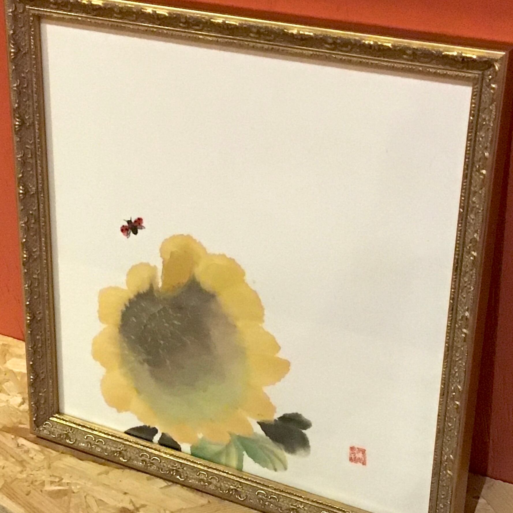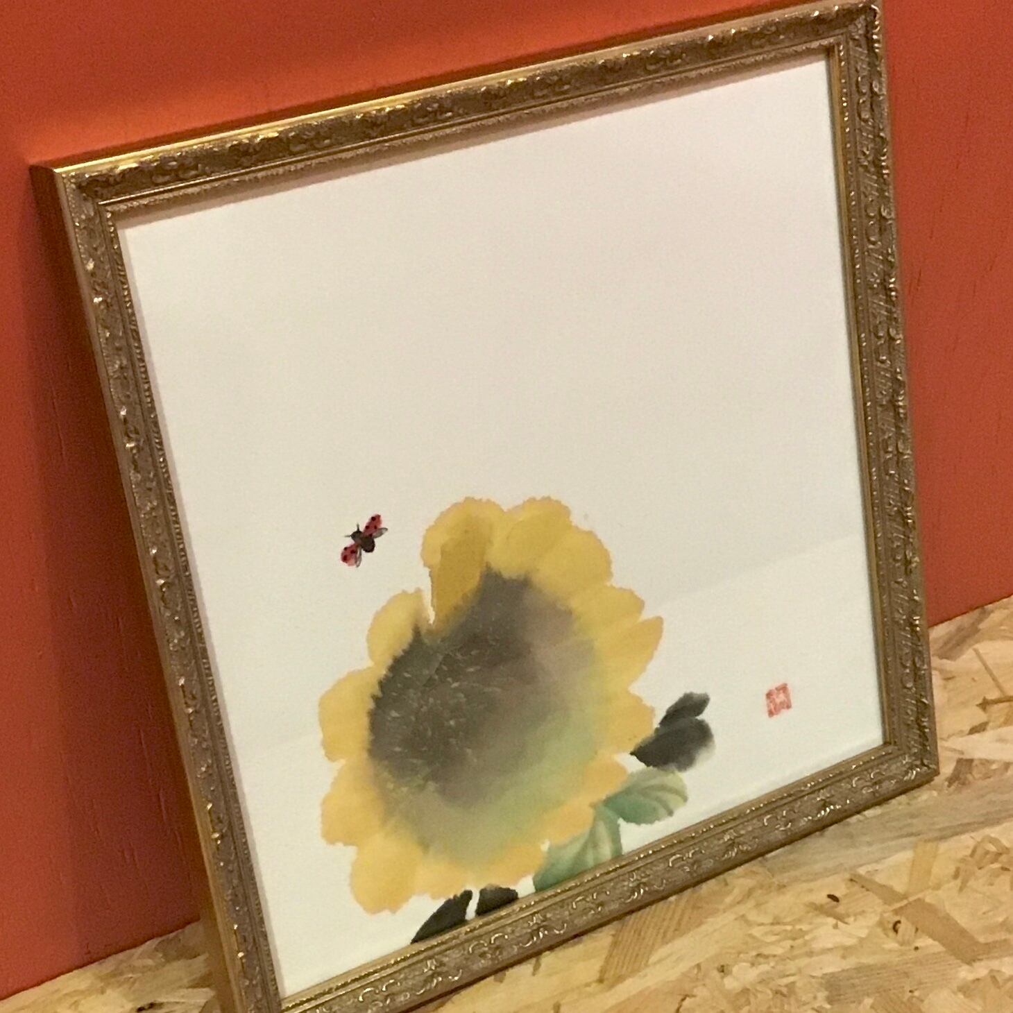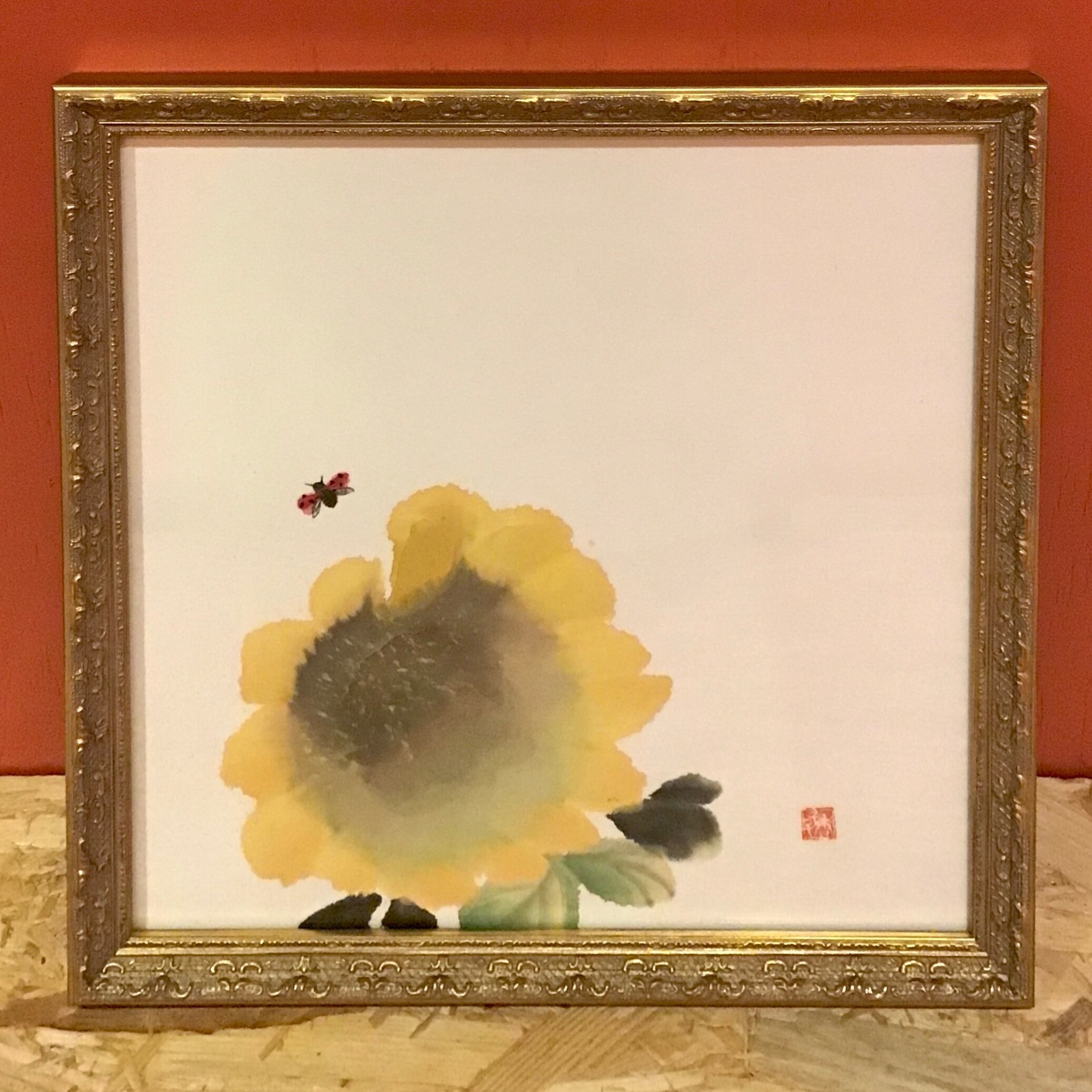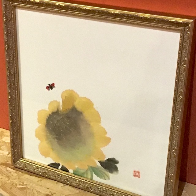 【素材】和紙(単宣)、墨、顔彩 (額装)ガラス