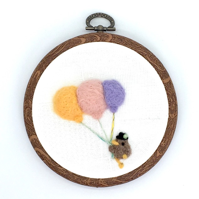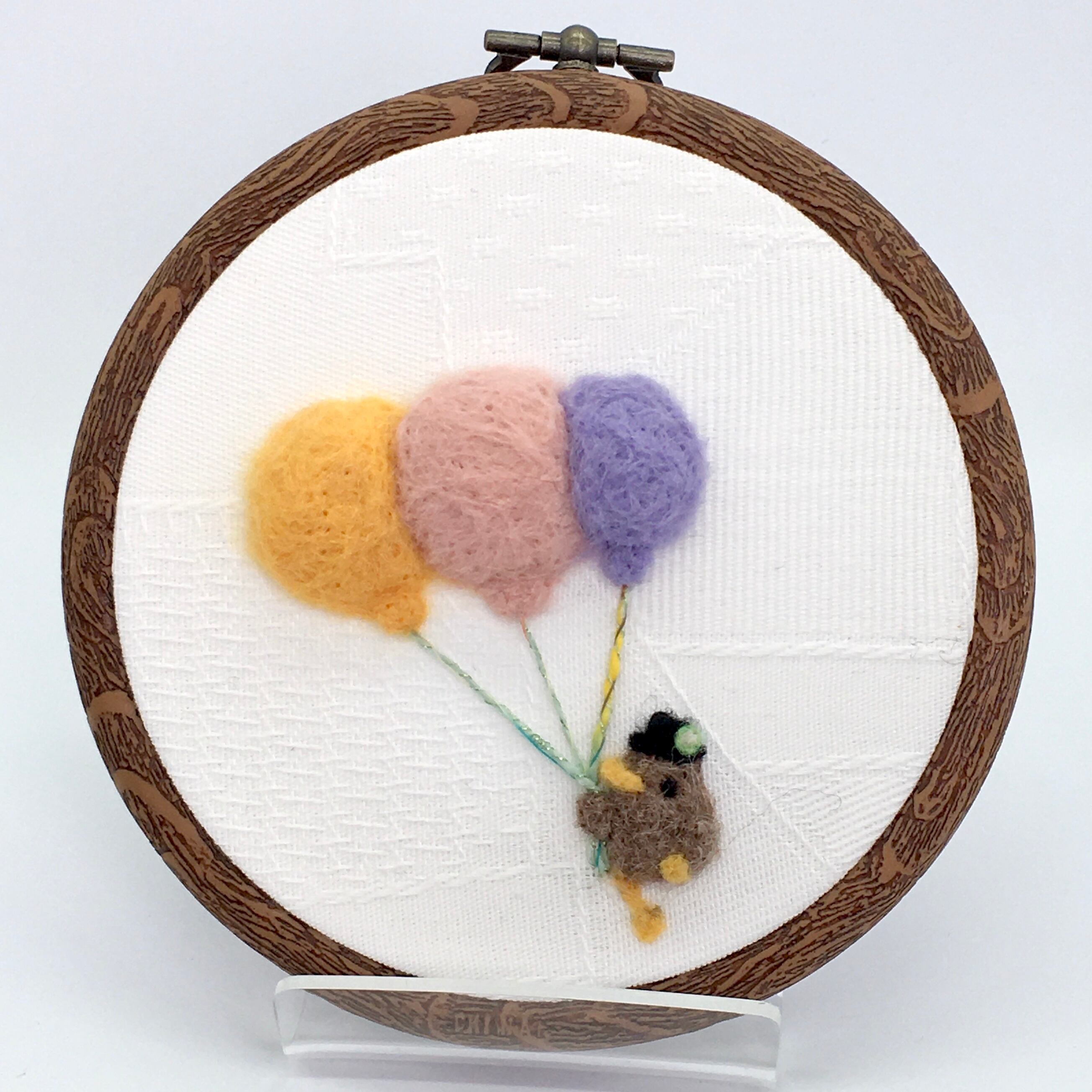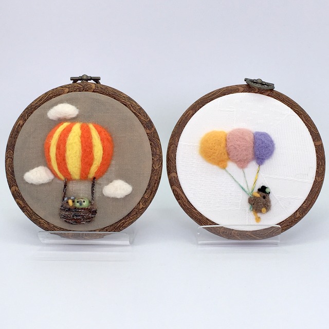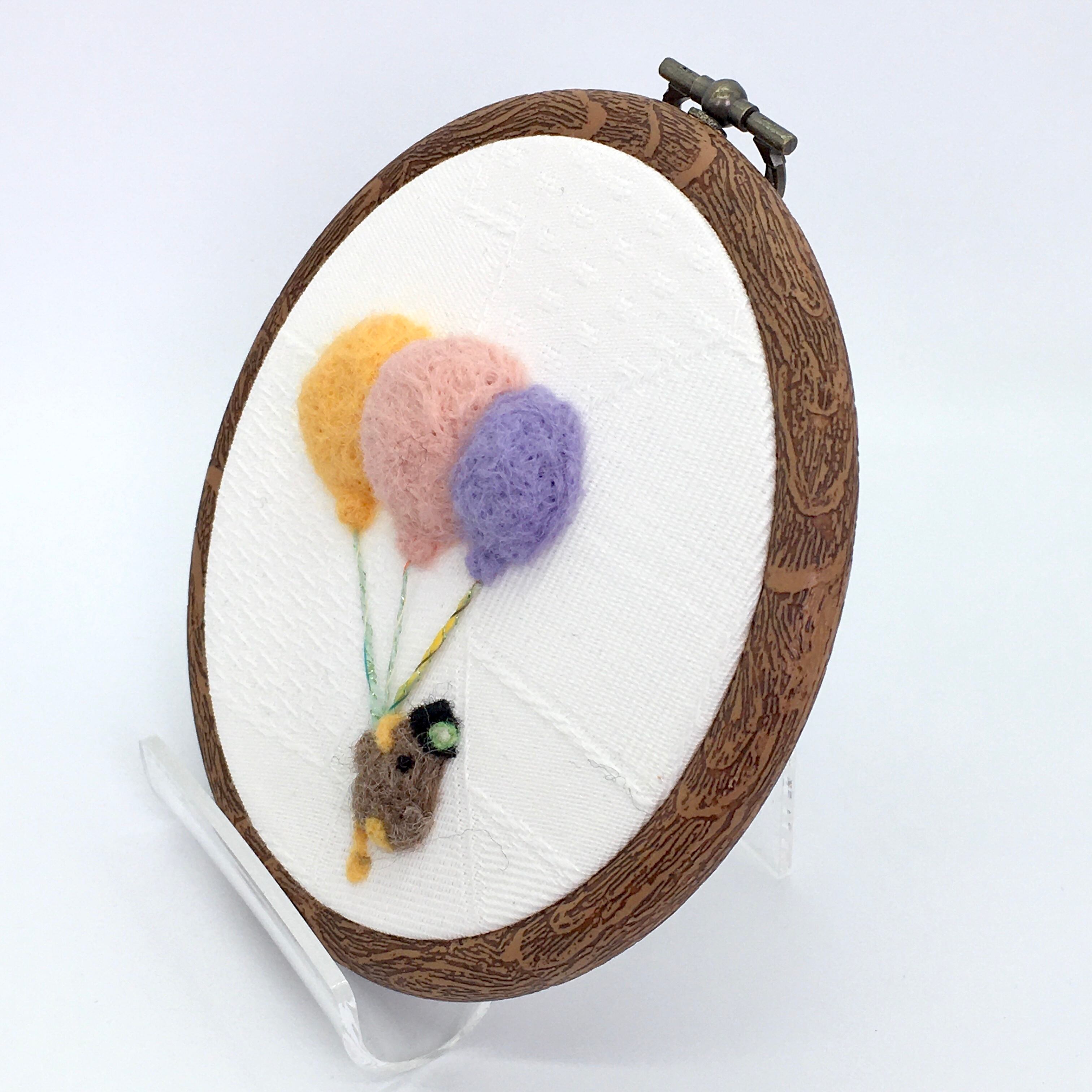 羊毛で刺したモチーフが立体的なインテリアフレーム作品、