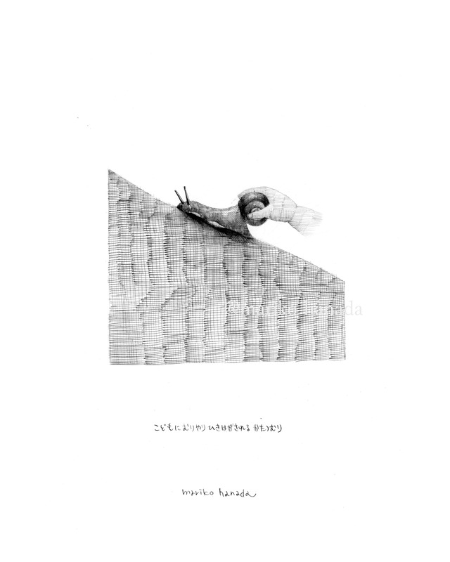【mariko hanada】原画「こどもにむりやり ひきはがされるかたつむり」