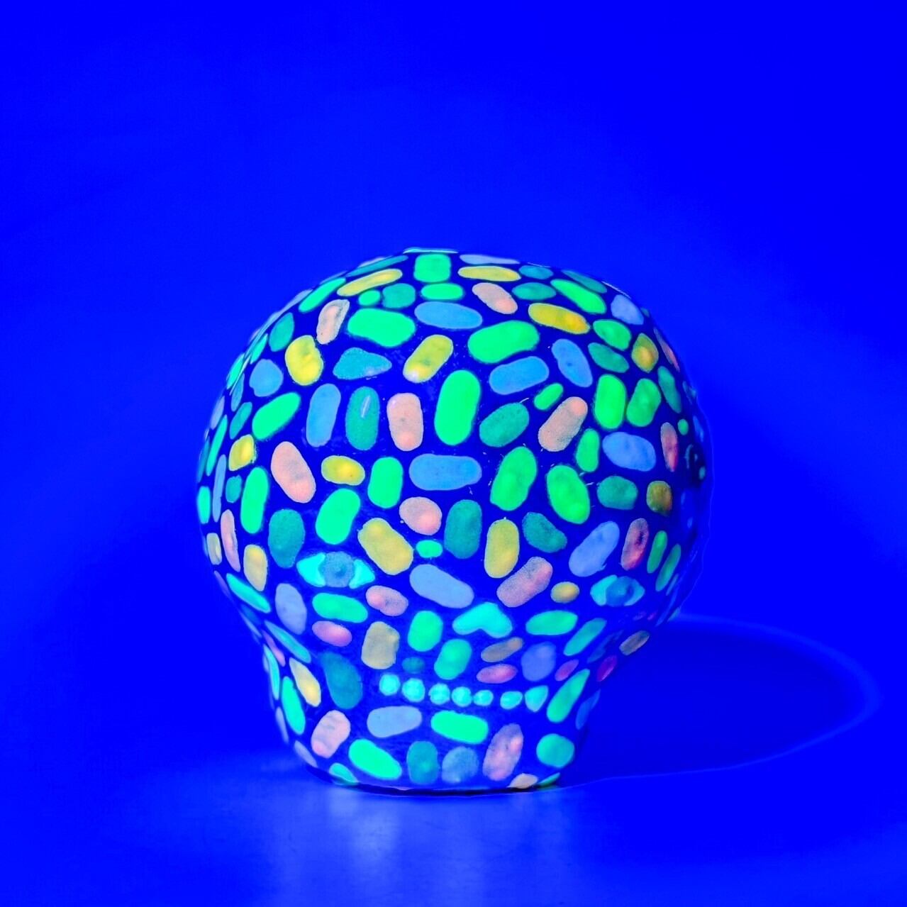 カラフルに光るガイコツです。