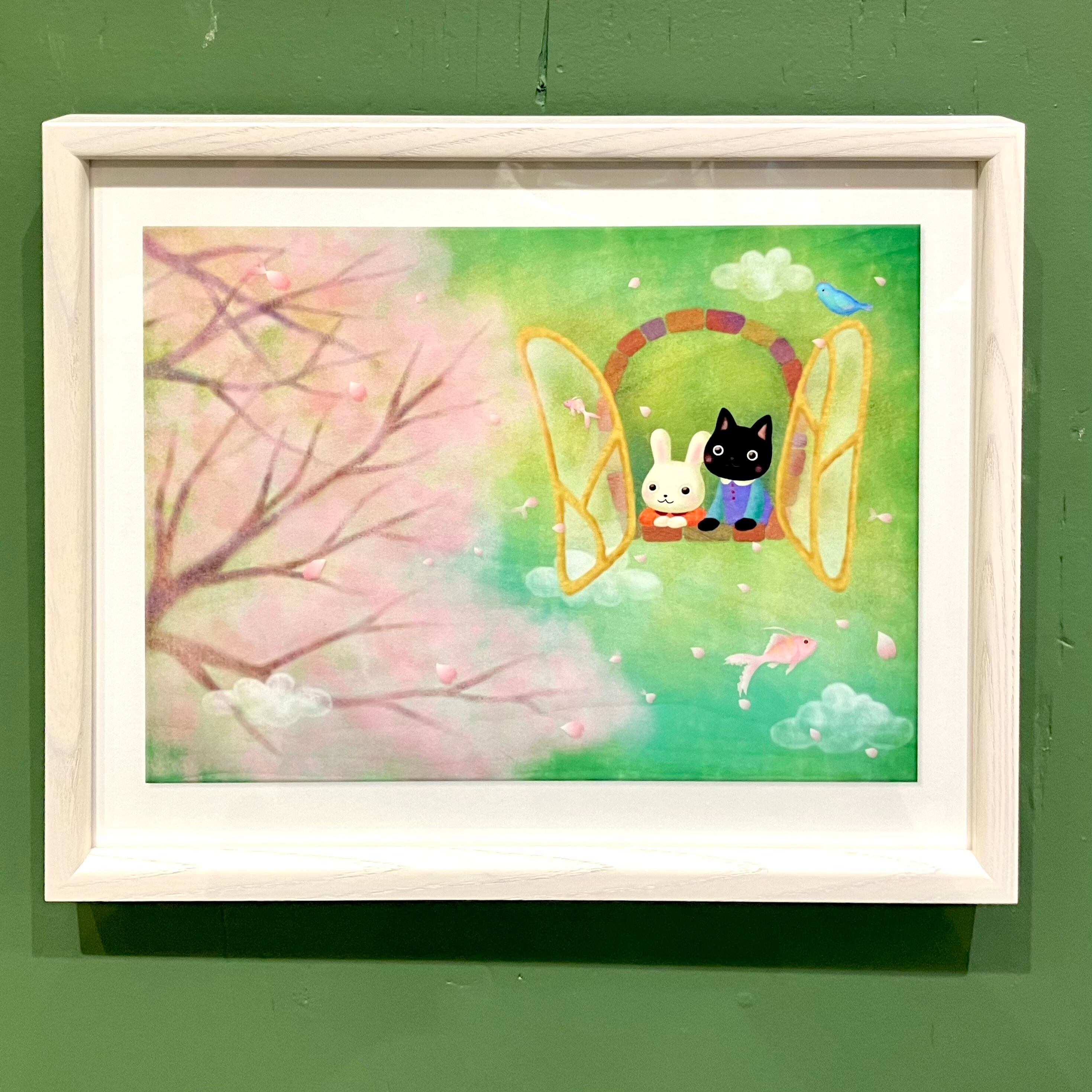 【月魚ひろこ】CGプリント額装「春風にのって」