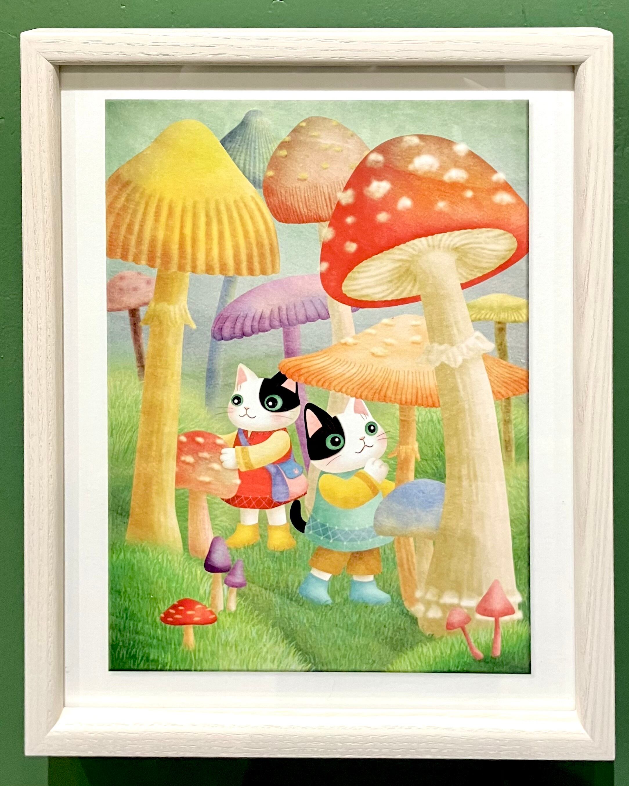 【月魚ひろこ】CGプリント額装「きのこ探検隊」